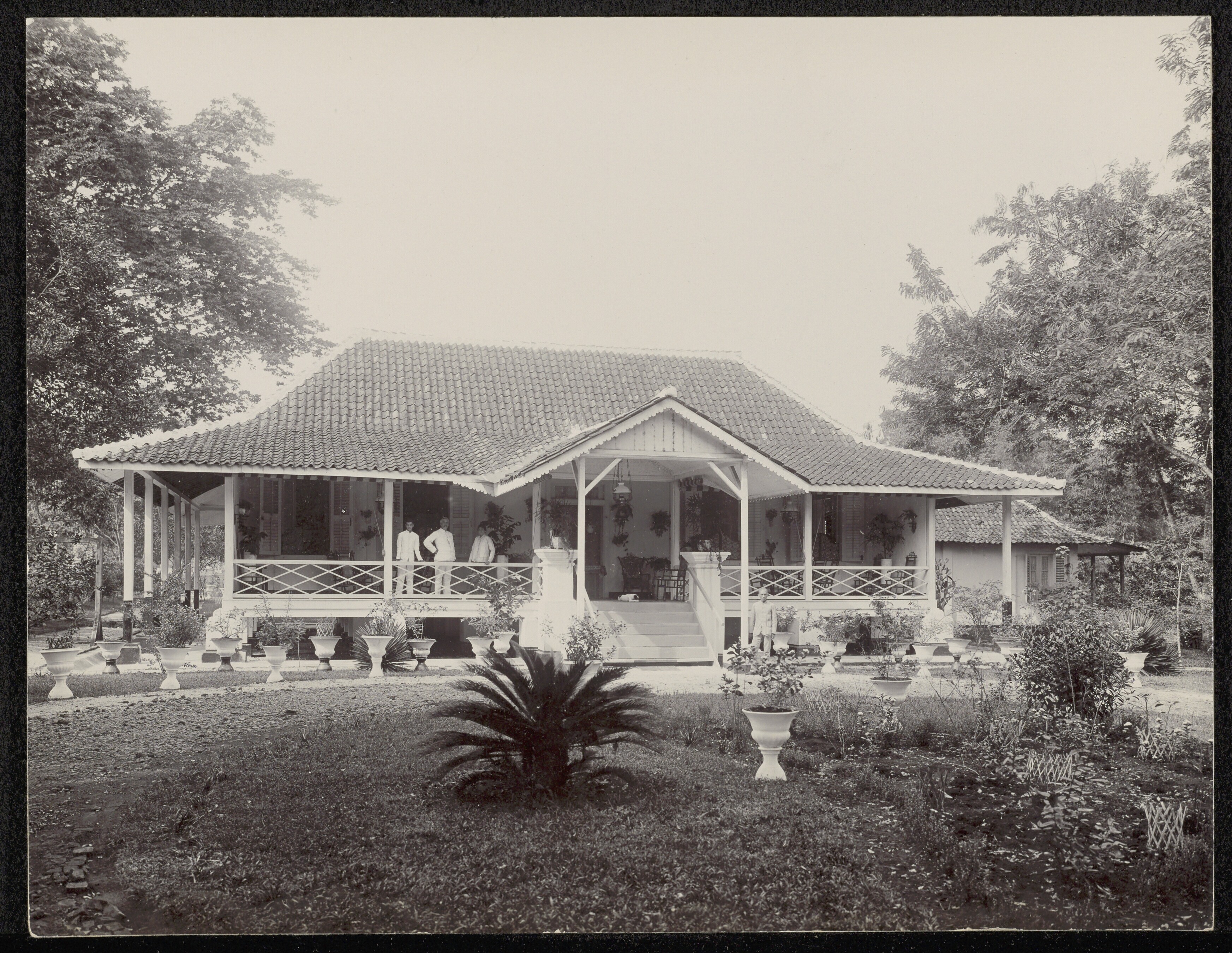 Europeaan met Javaanse arbeiders aan het werk in de ...