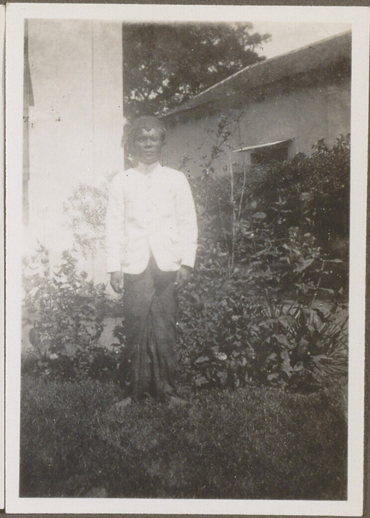 Portret van een Javaans lid van het huispersoneel zi...