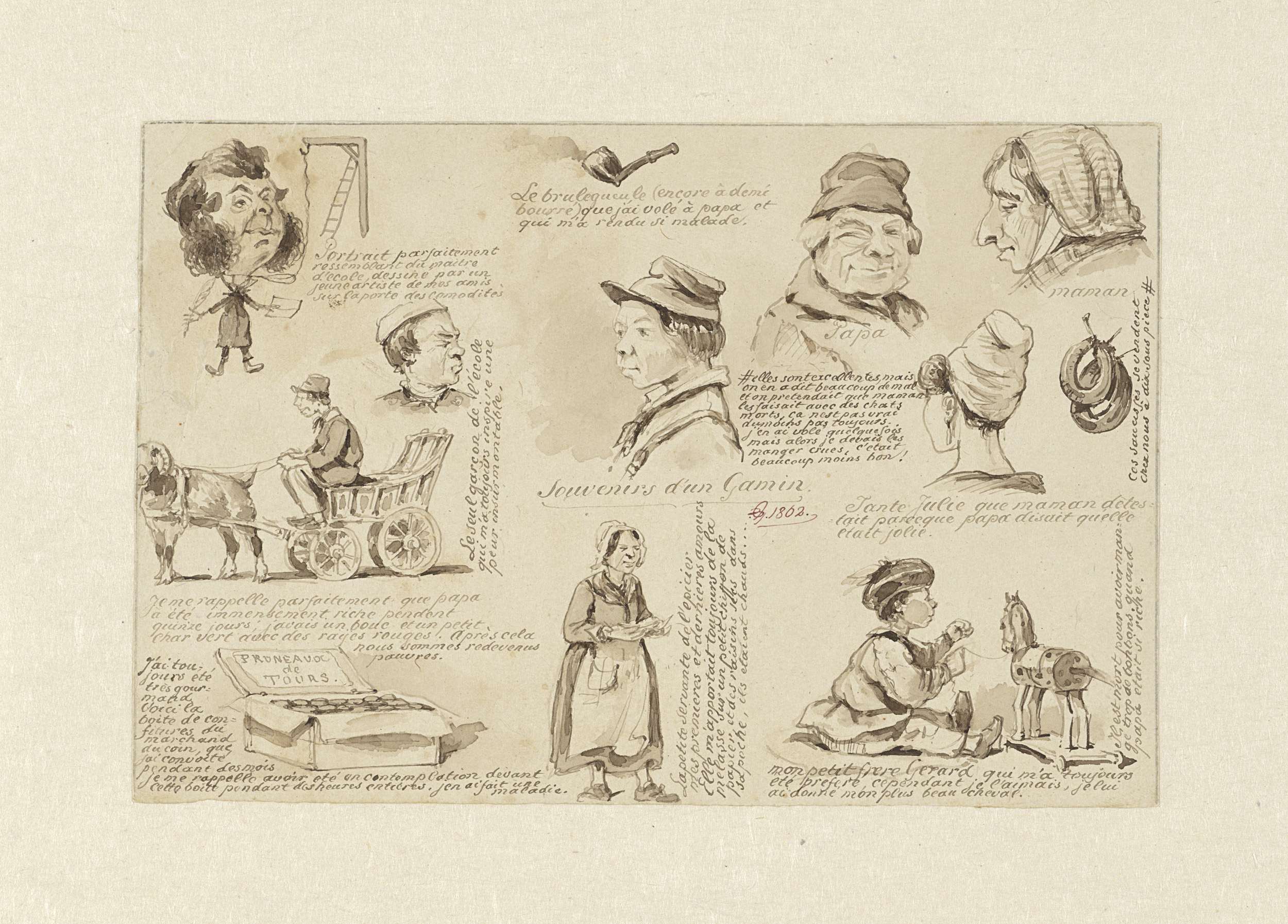Karton waarop 61 kindertekeningen van dieren en mens...