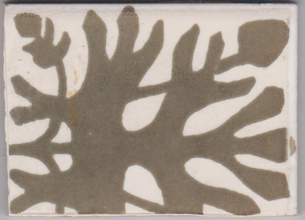 Tegel in zeefdruk, met voorstelling: tegelfragment m...