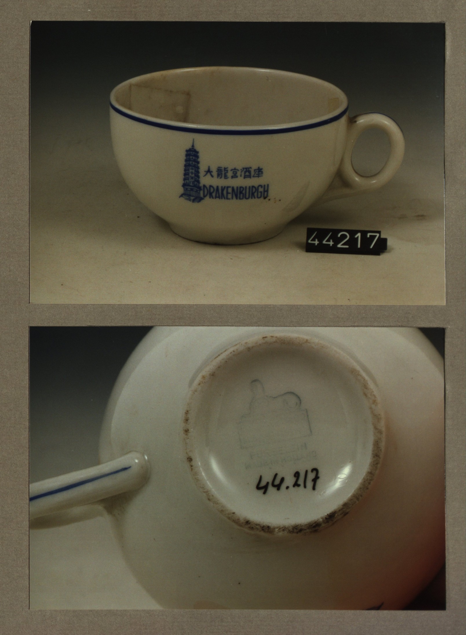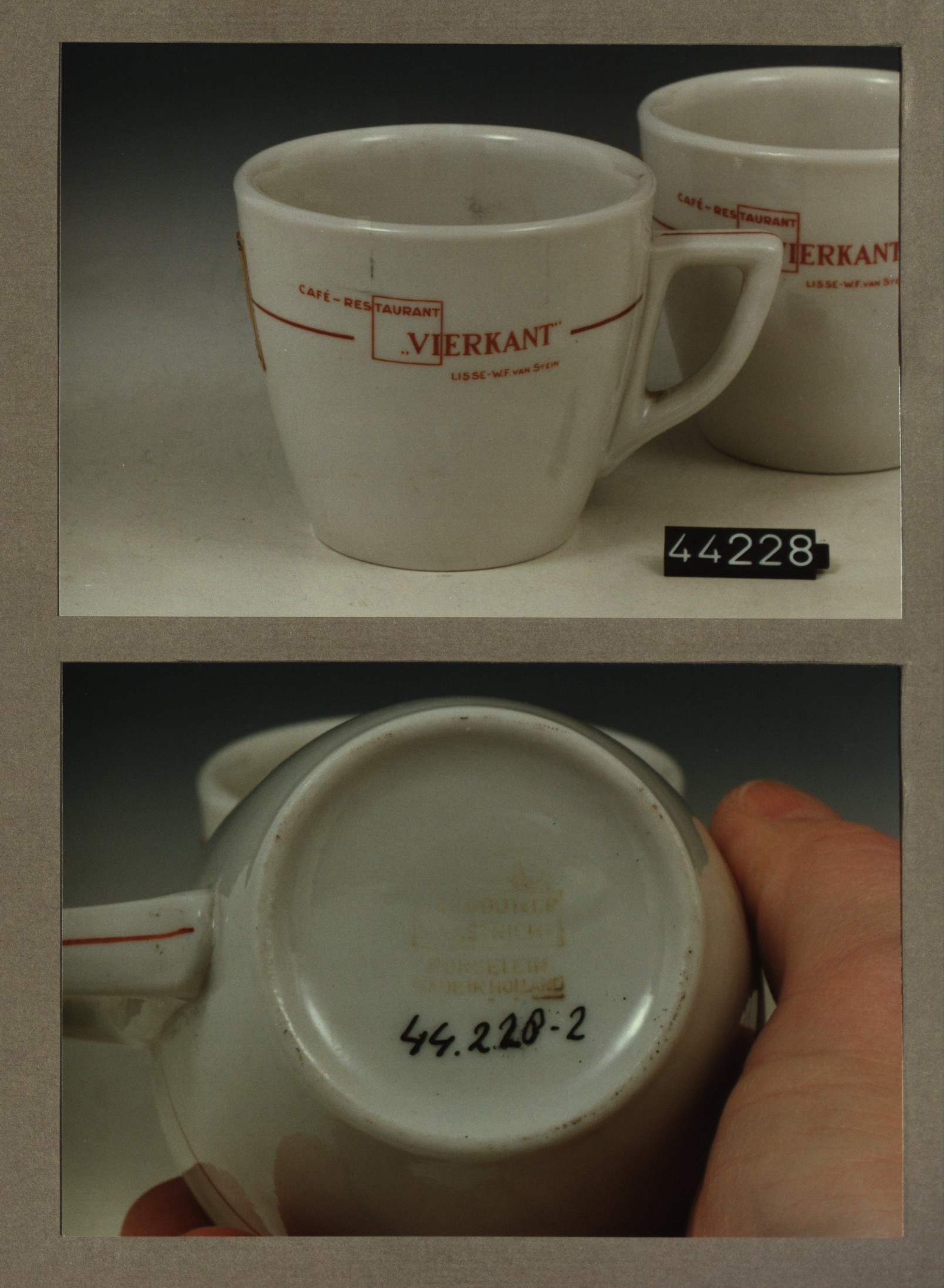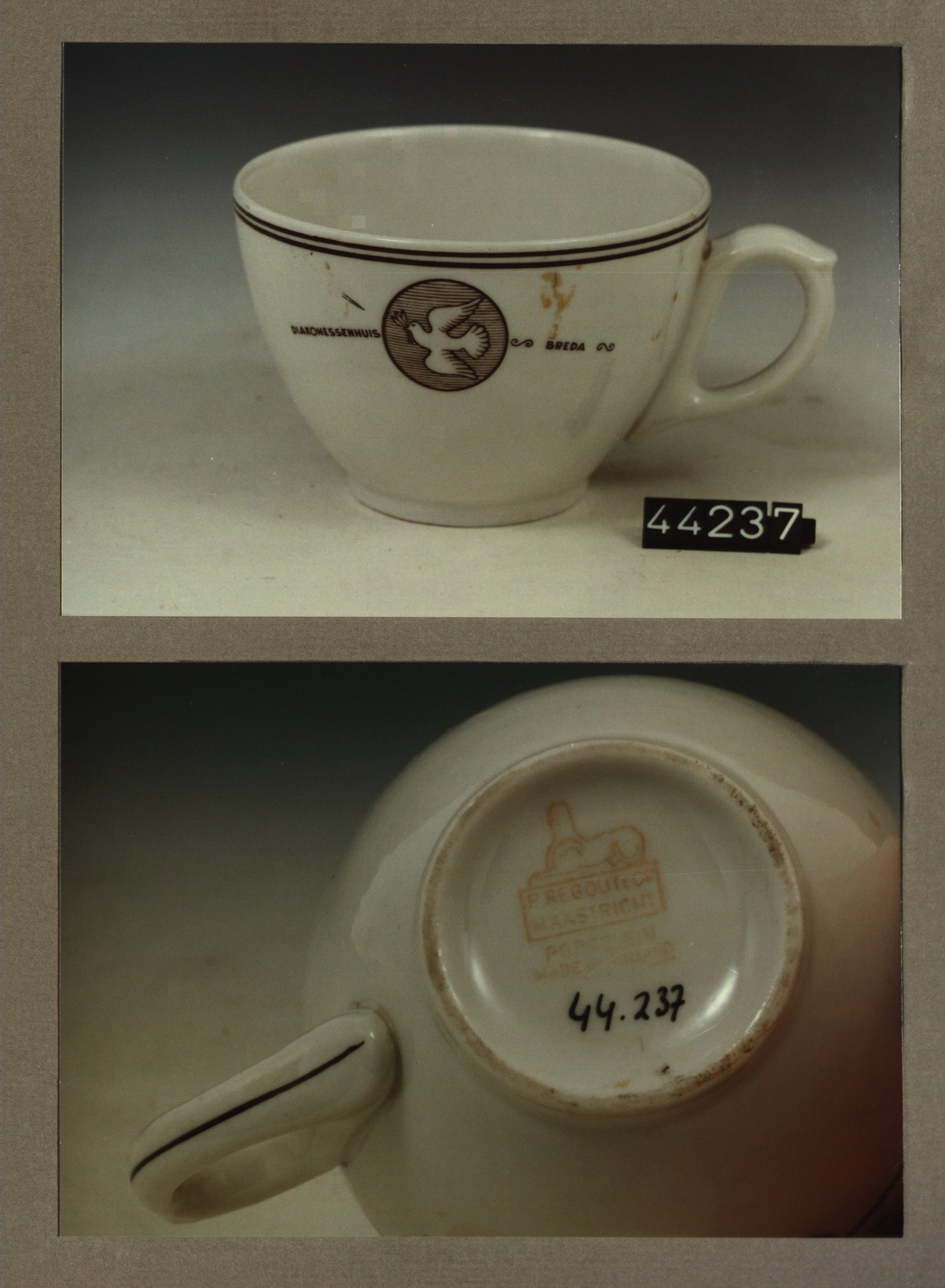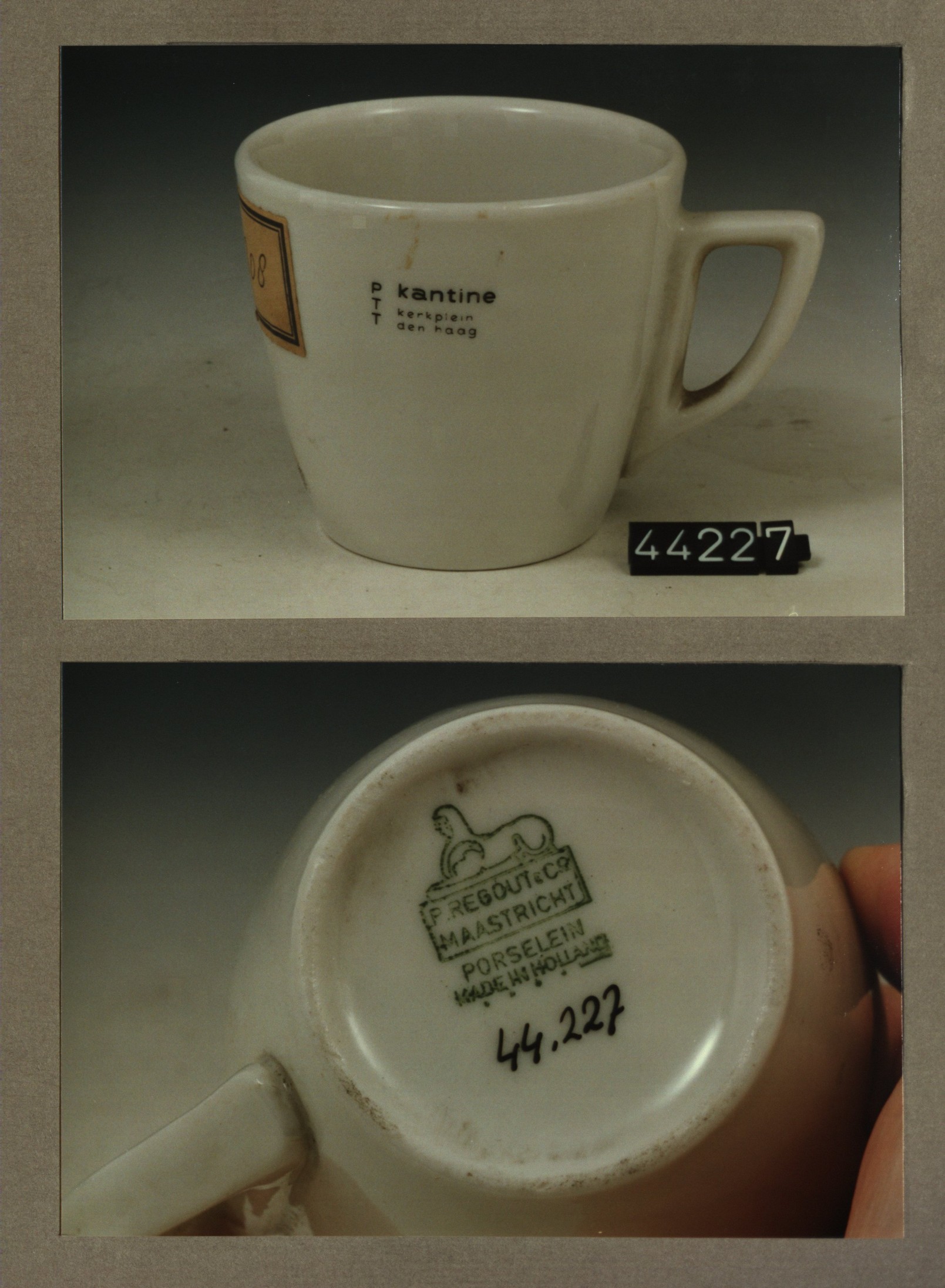 Kop met opschrift, model P2 met decor PTT kantine De...
