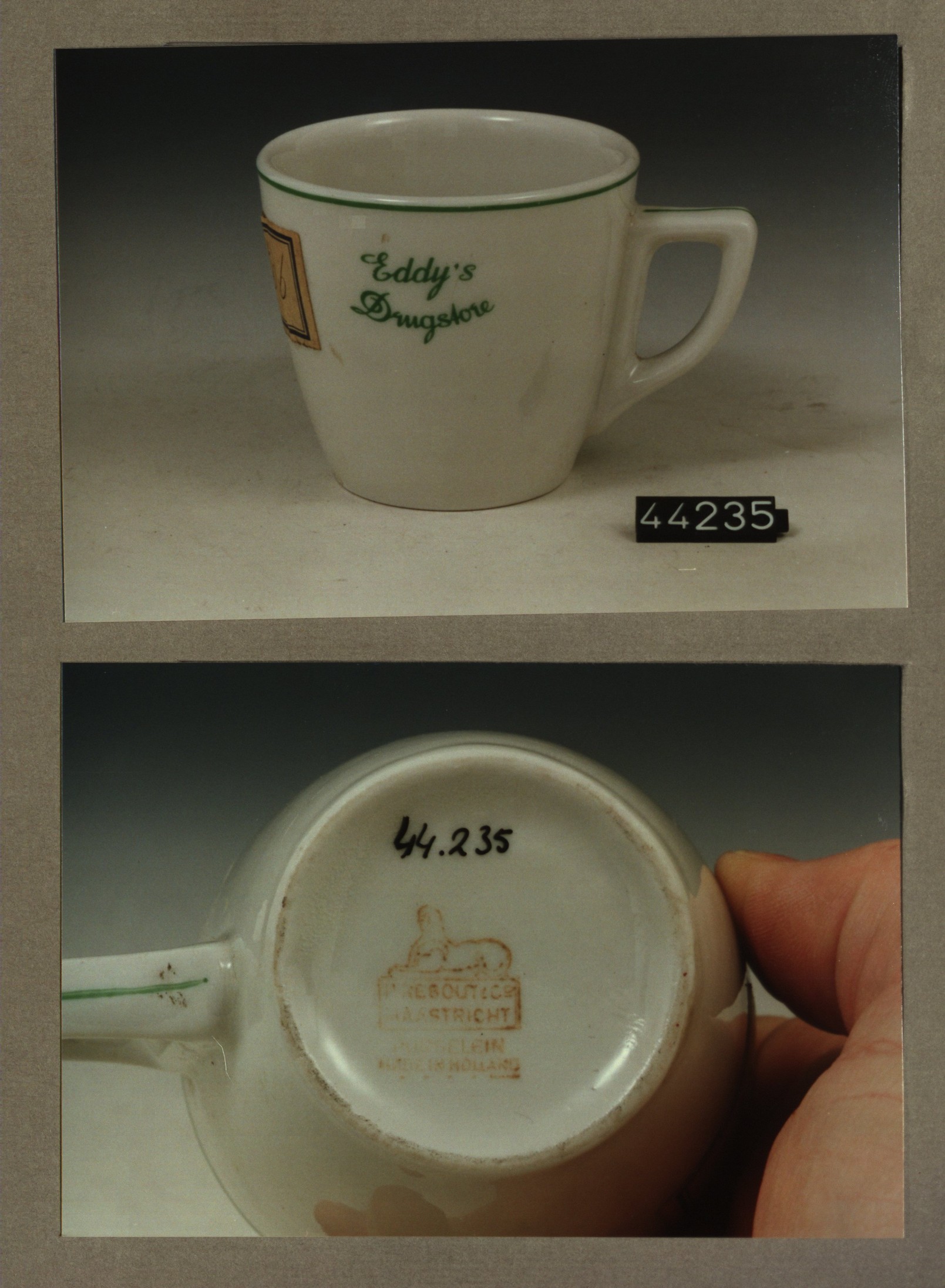 Kop met opschrift, model P2 met decor Eddy's drugsto...