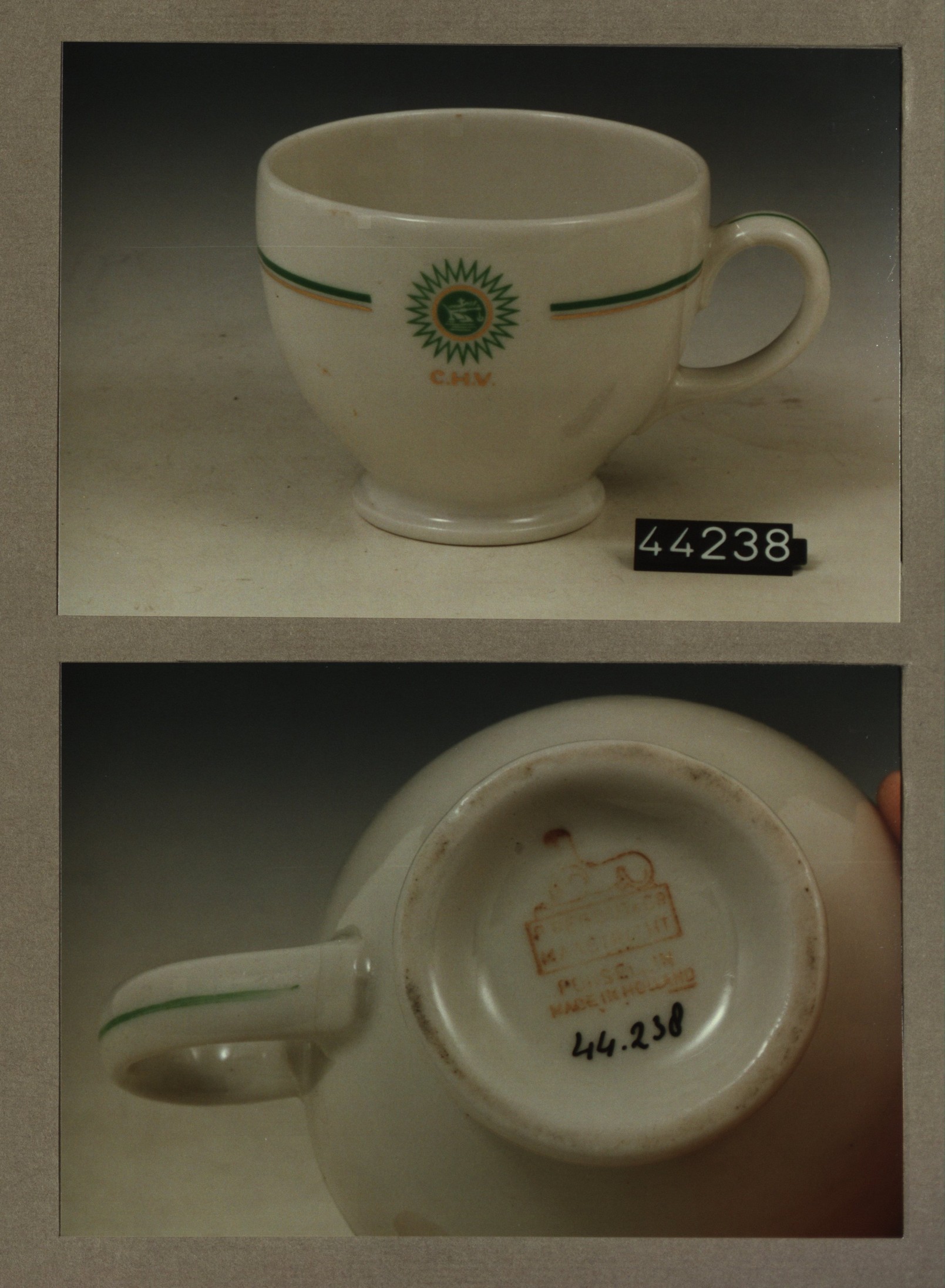 Kop met opschrift, model Modern met decor C.H.V. Veghel