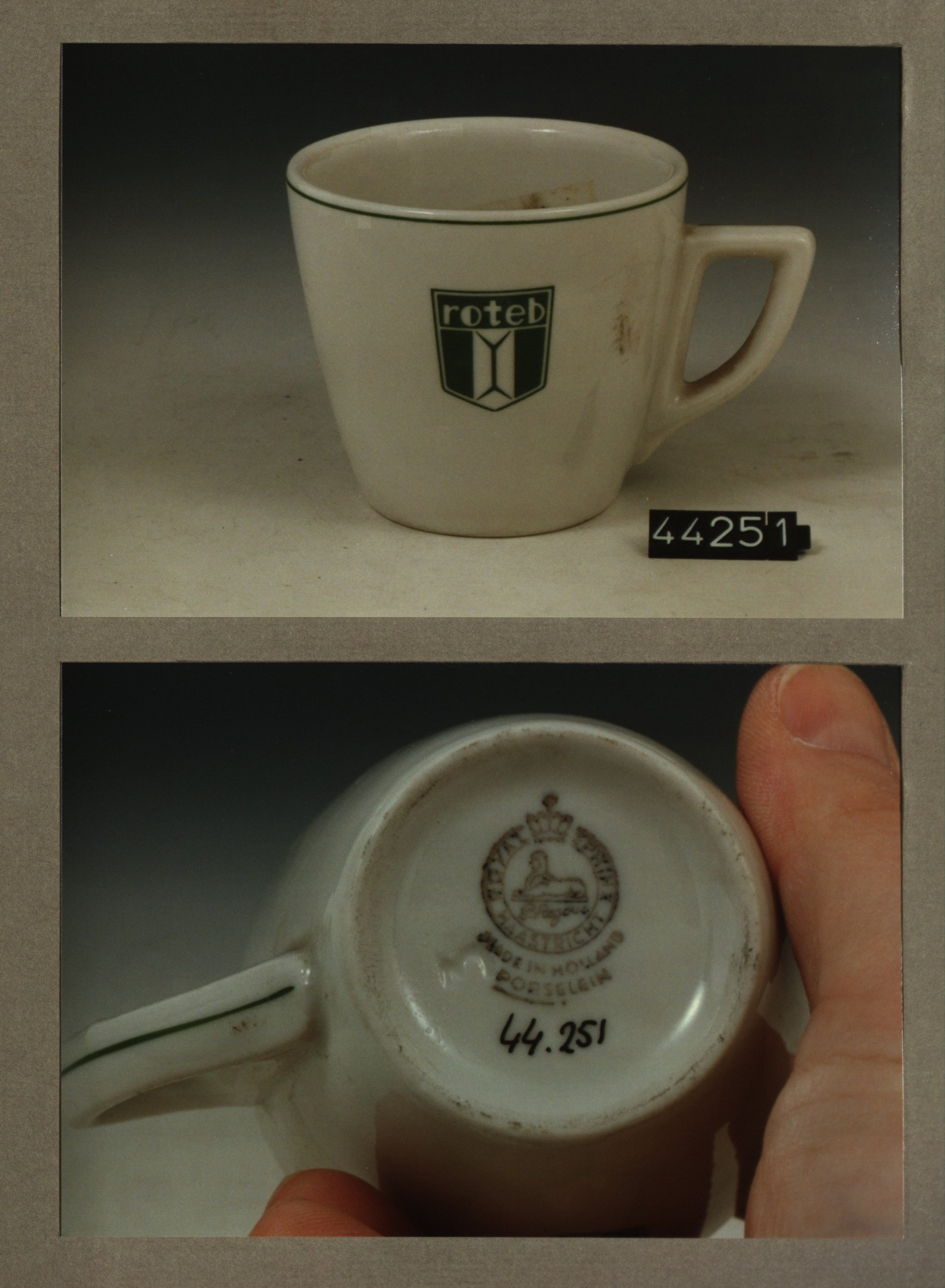 Kop met opschrift, model P2 met decor Roteb
