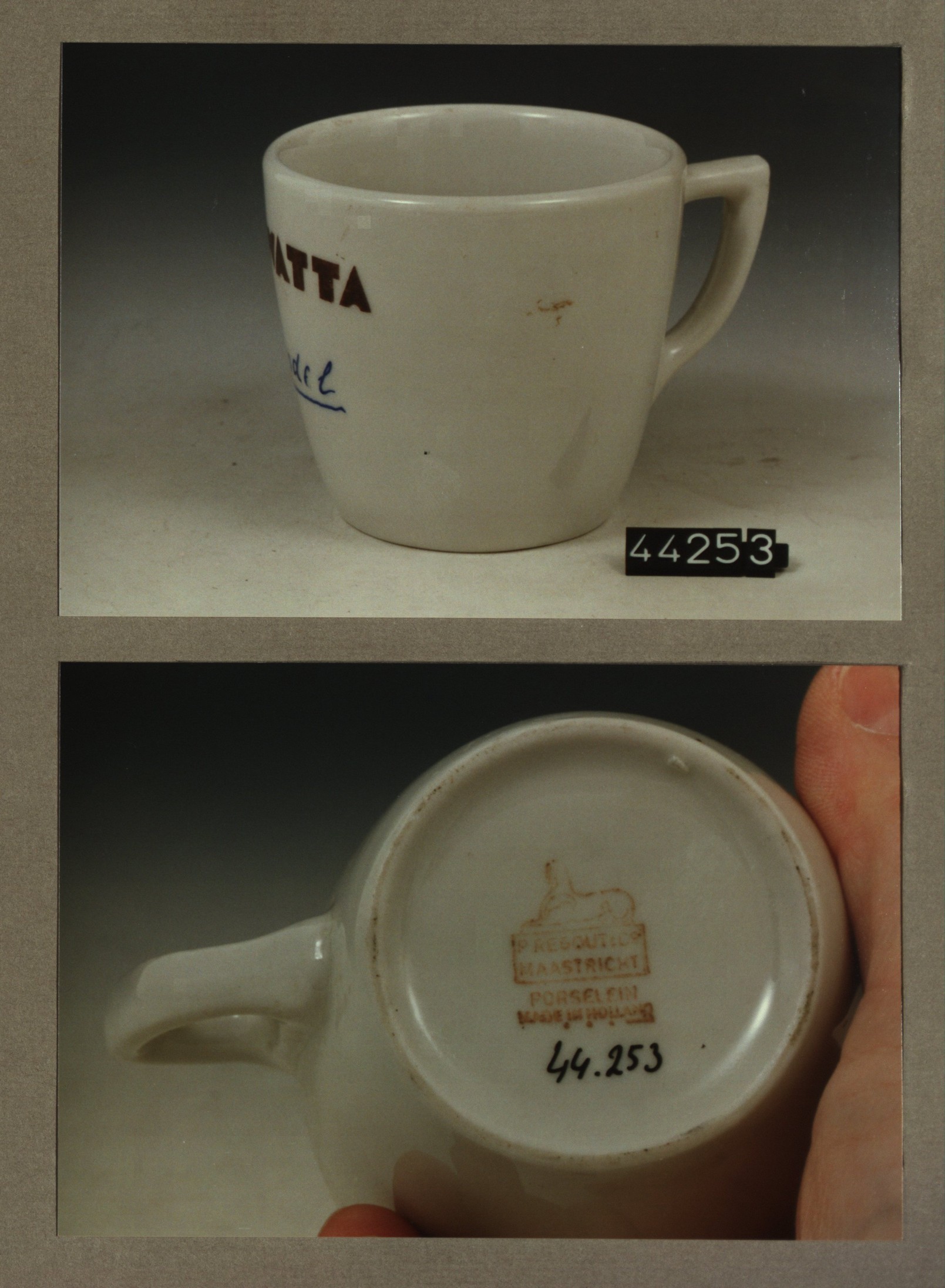 Kop met opschrift, model P2 met decor Meubelfabriek ...