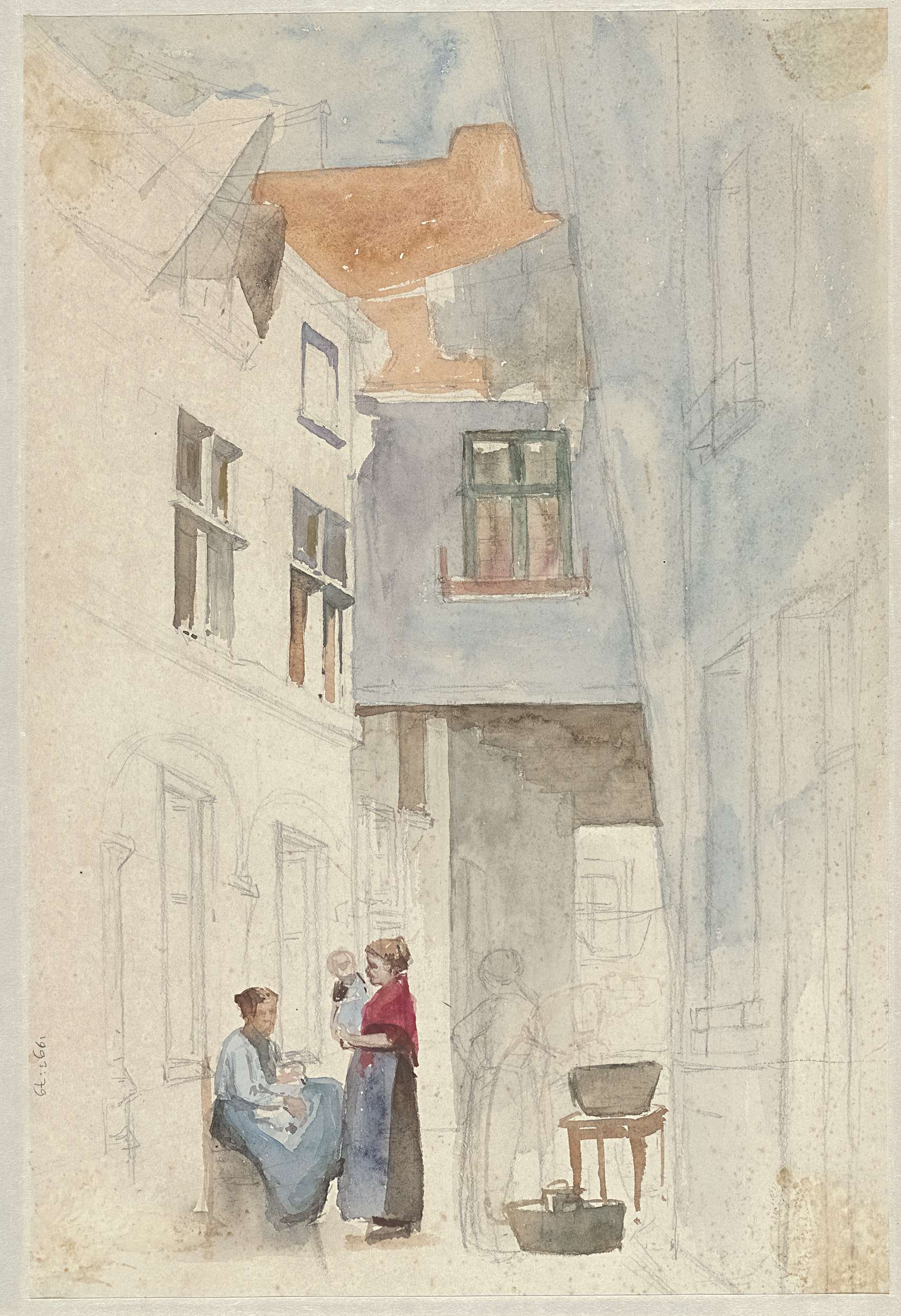 Vrouwen met een kind in een steeg