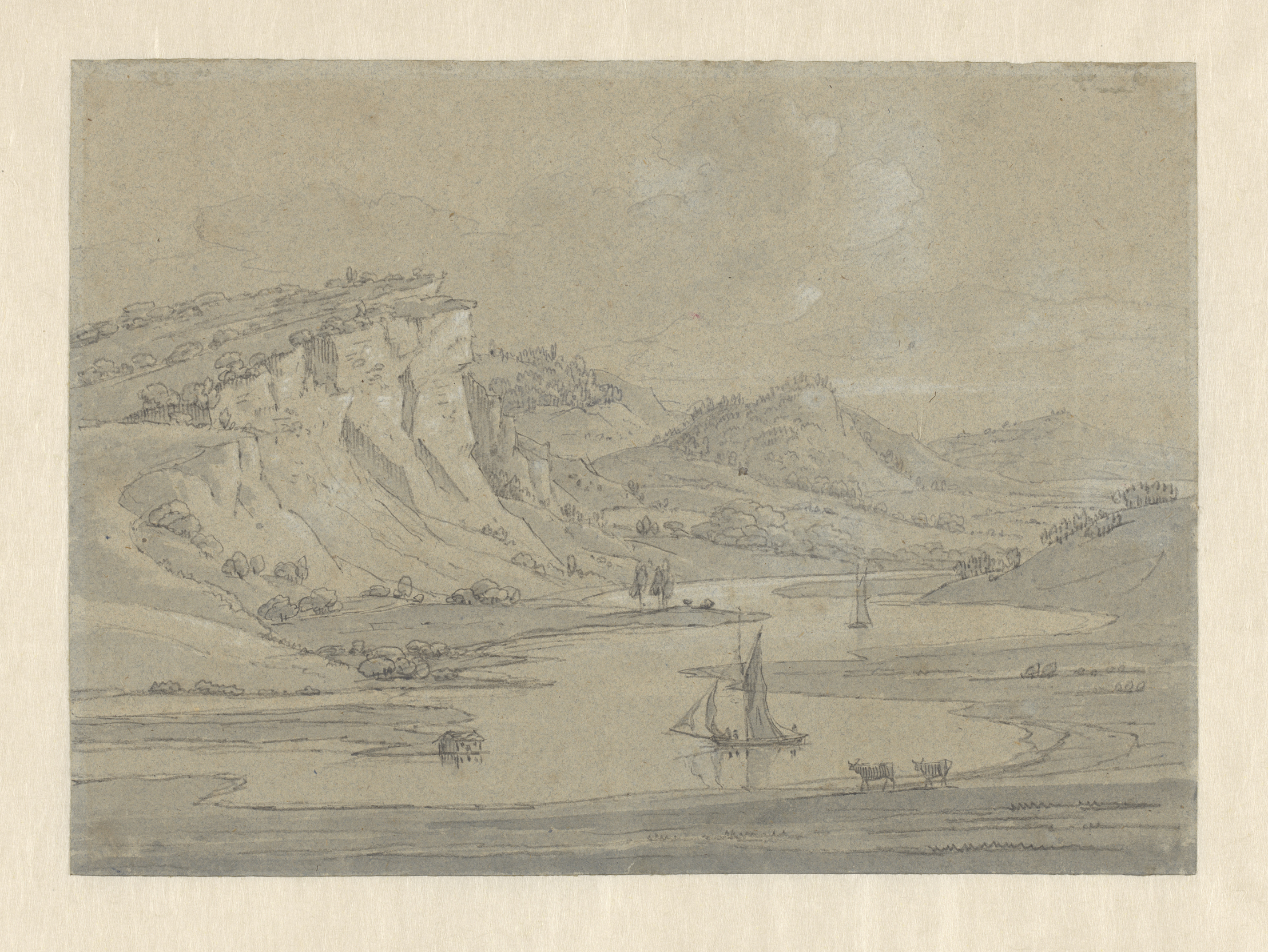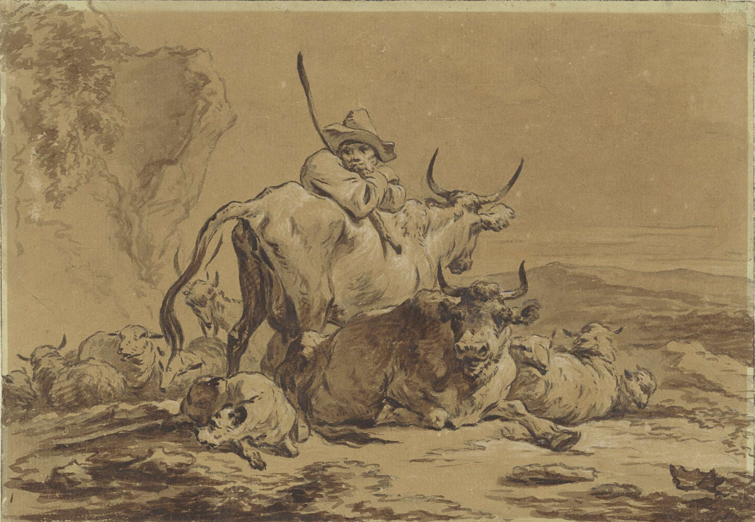 Herder met koeien en schapen