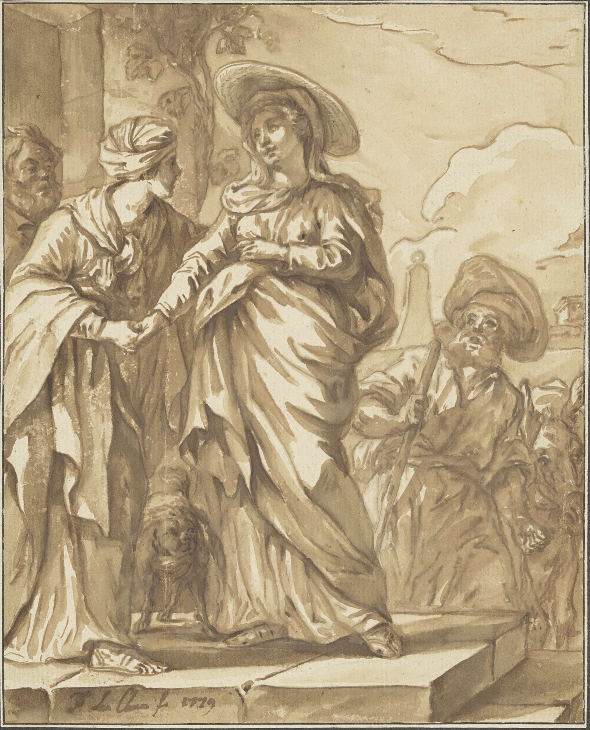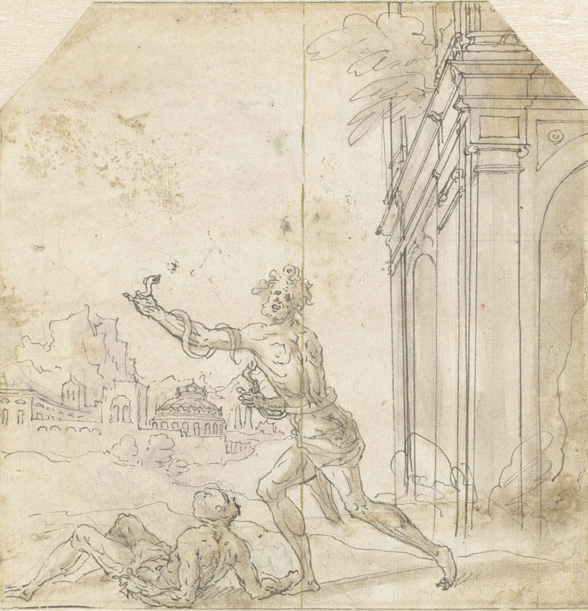 Twee geknielde figuren en twee kopstudies