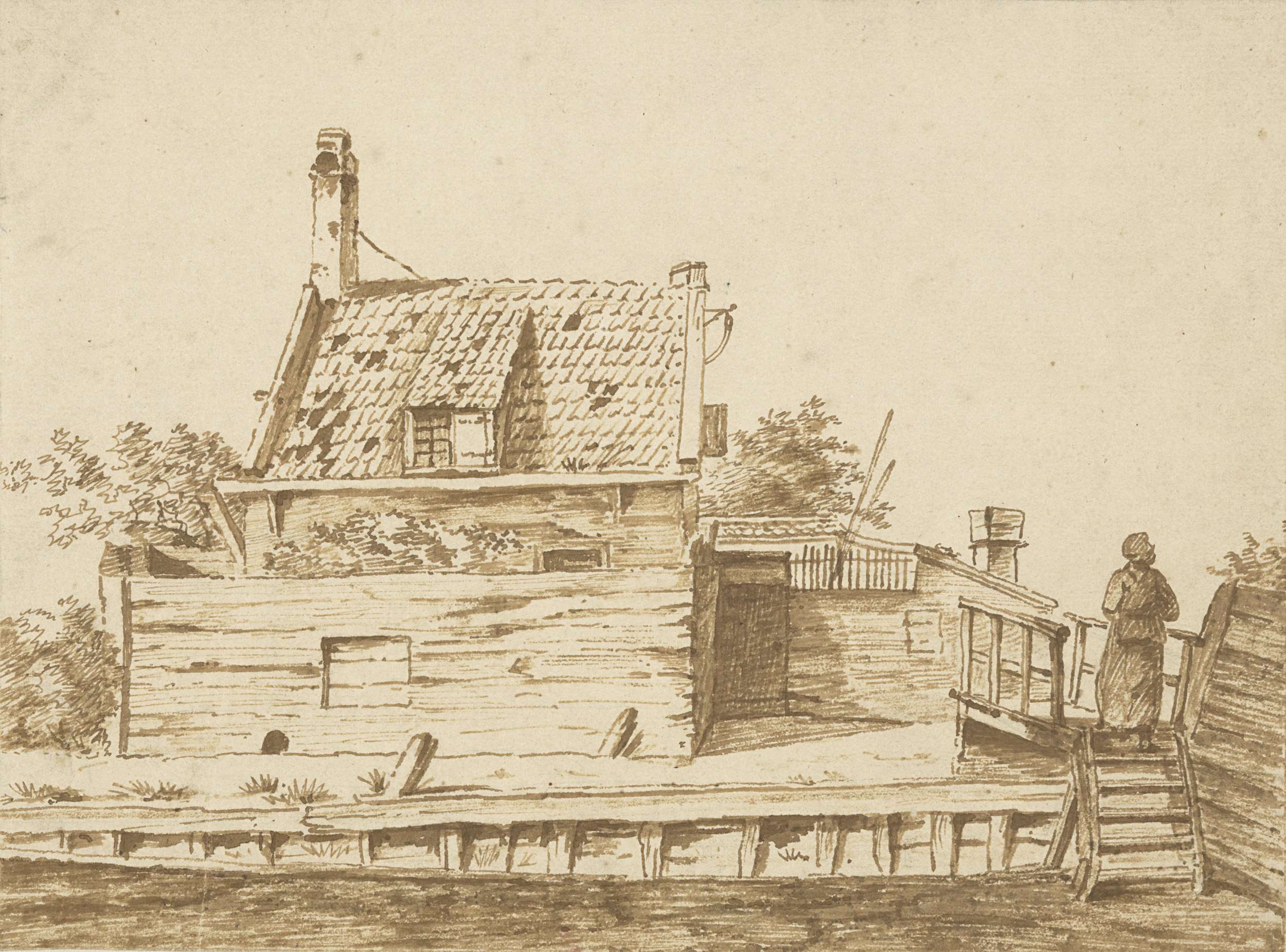 Huis met houten omheining aan het water