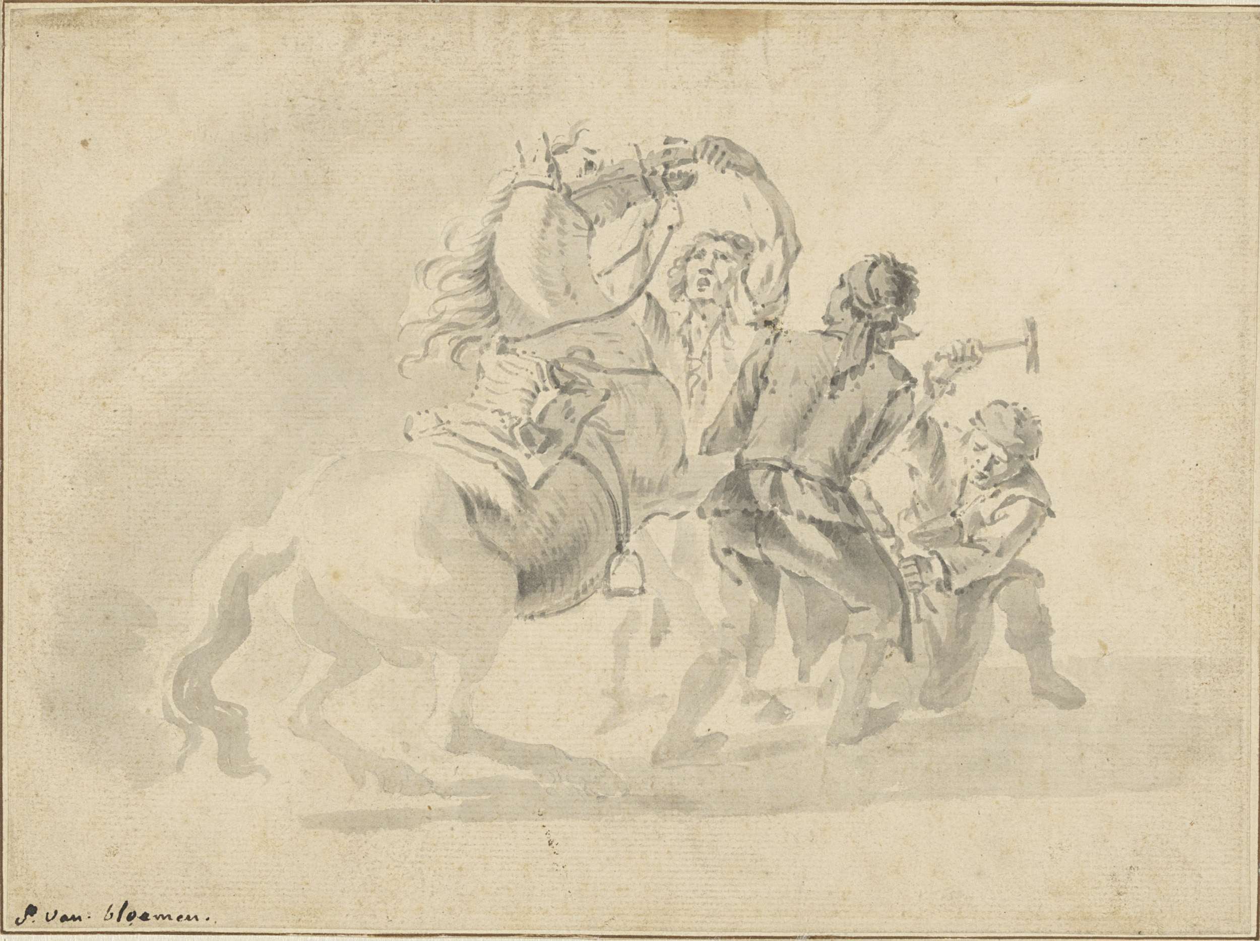 Smid tracht een paard te beslaan