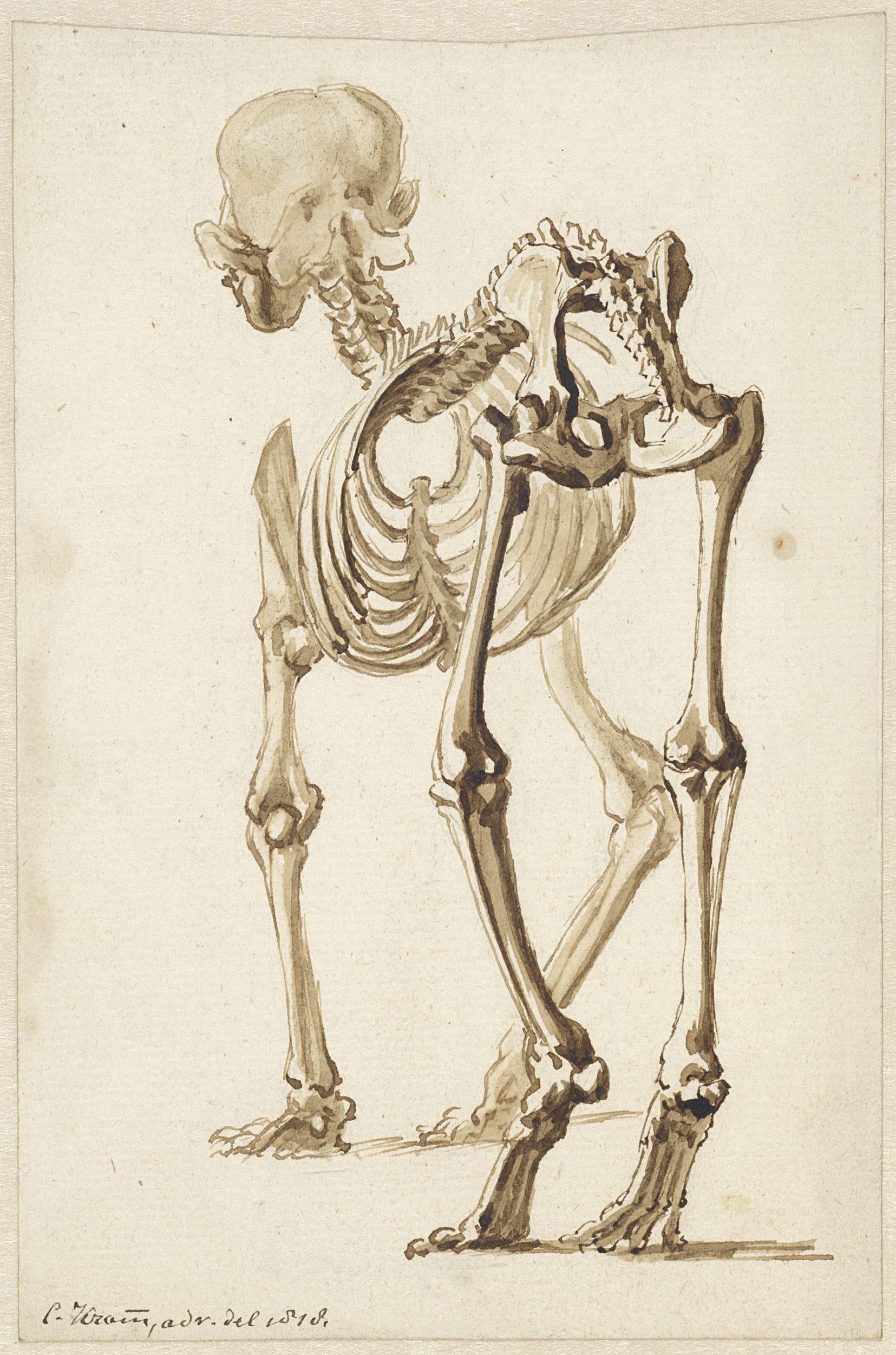 Skelet van een hond, schuin van achteren