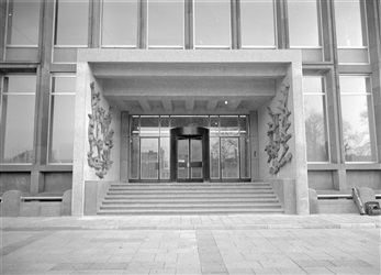 De hoofdingang van het nieuwe provinciehuis aan de K...