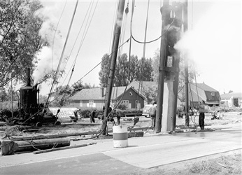 Bouw van oprit 's-Molenaarsbrug in Alphen, 1957