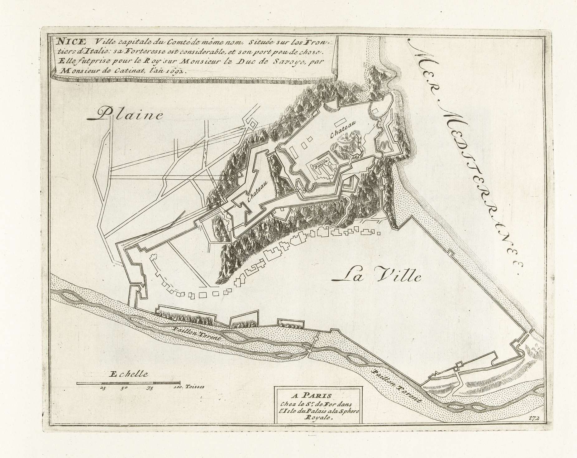 Kaart van Villefranche-sur-Mer en omgeving, ca. 1702