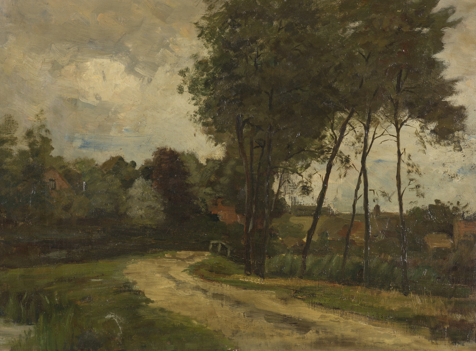 Landschap met molen en kerk