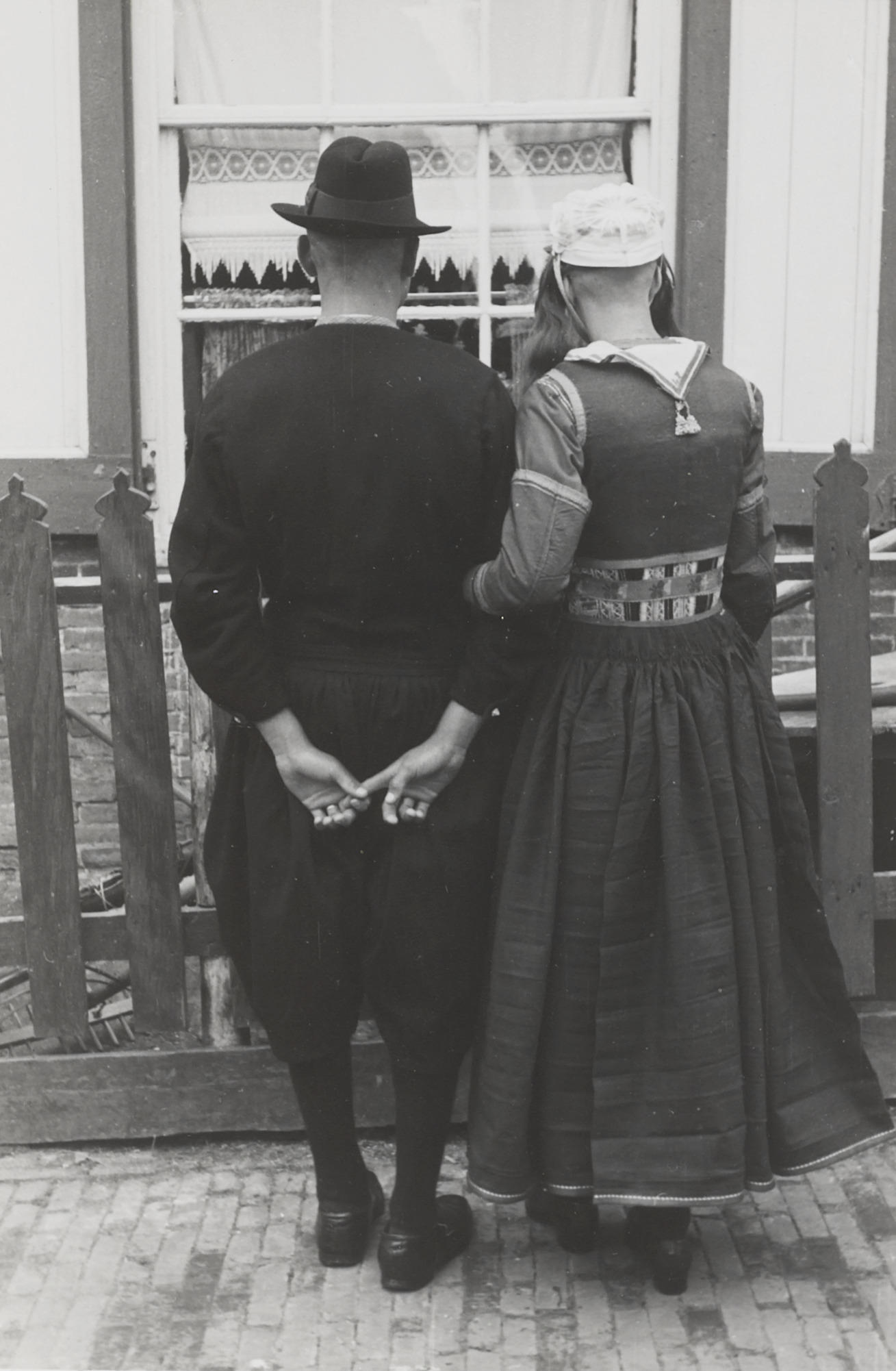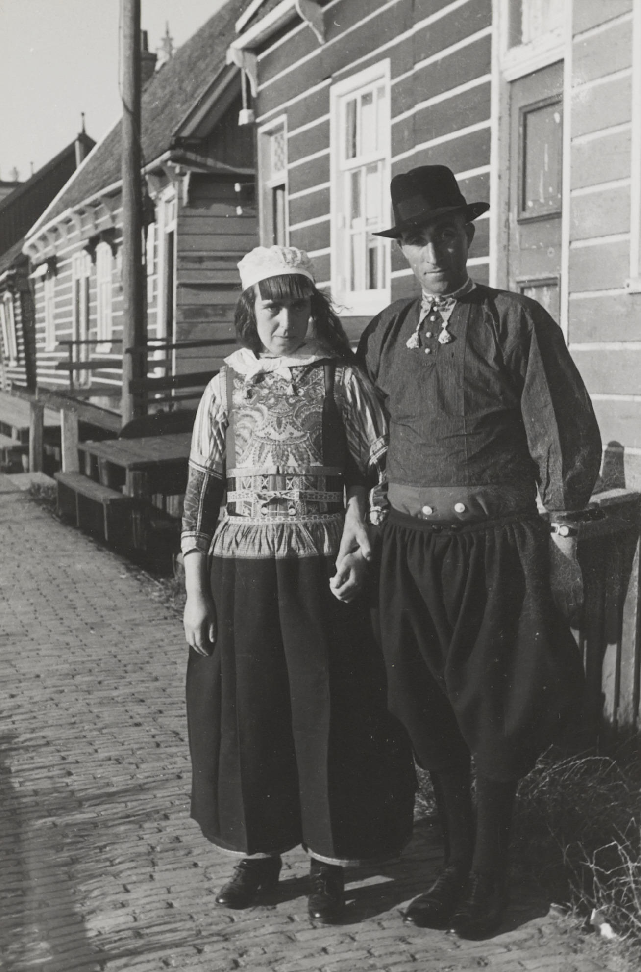 Bruidspaar in ondertrouwpak, Marken, 1943 (zwart-wit...