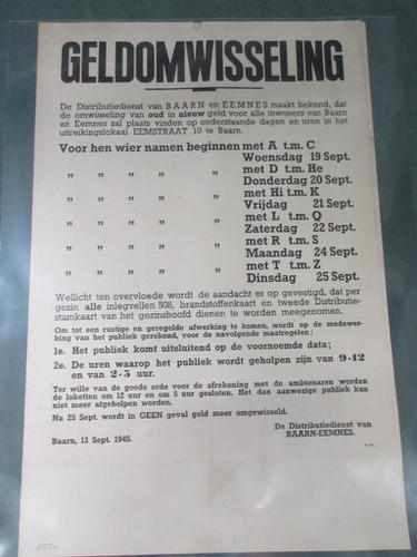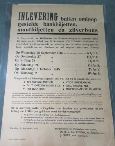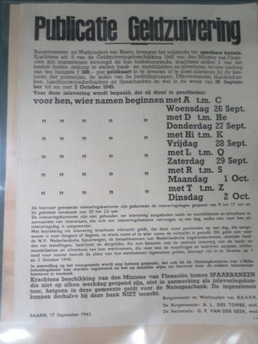Bekendmaking, publicatie geldzuivering, 17 sept 1945
