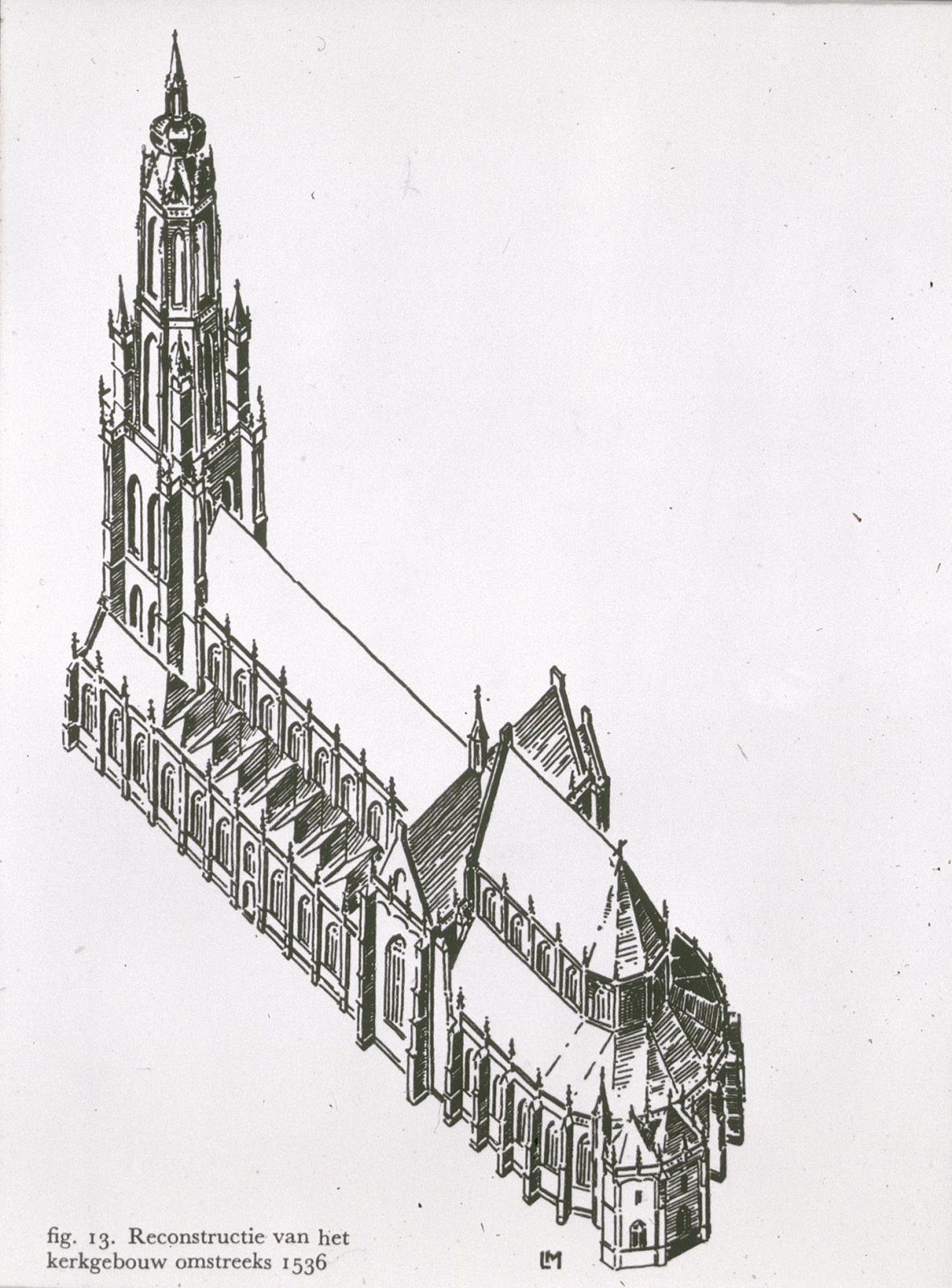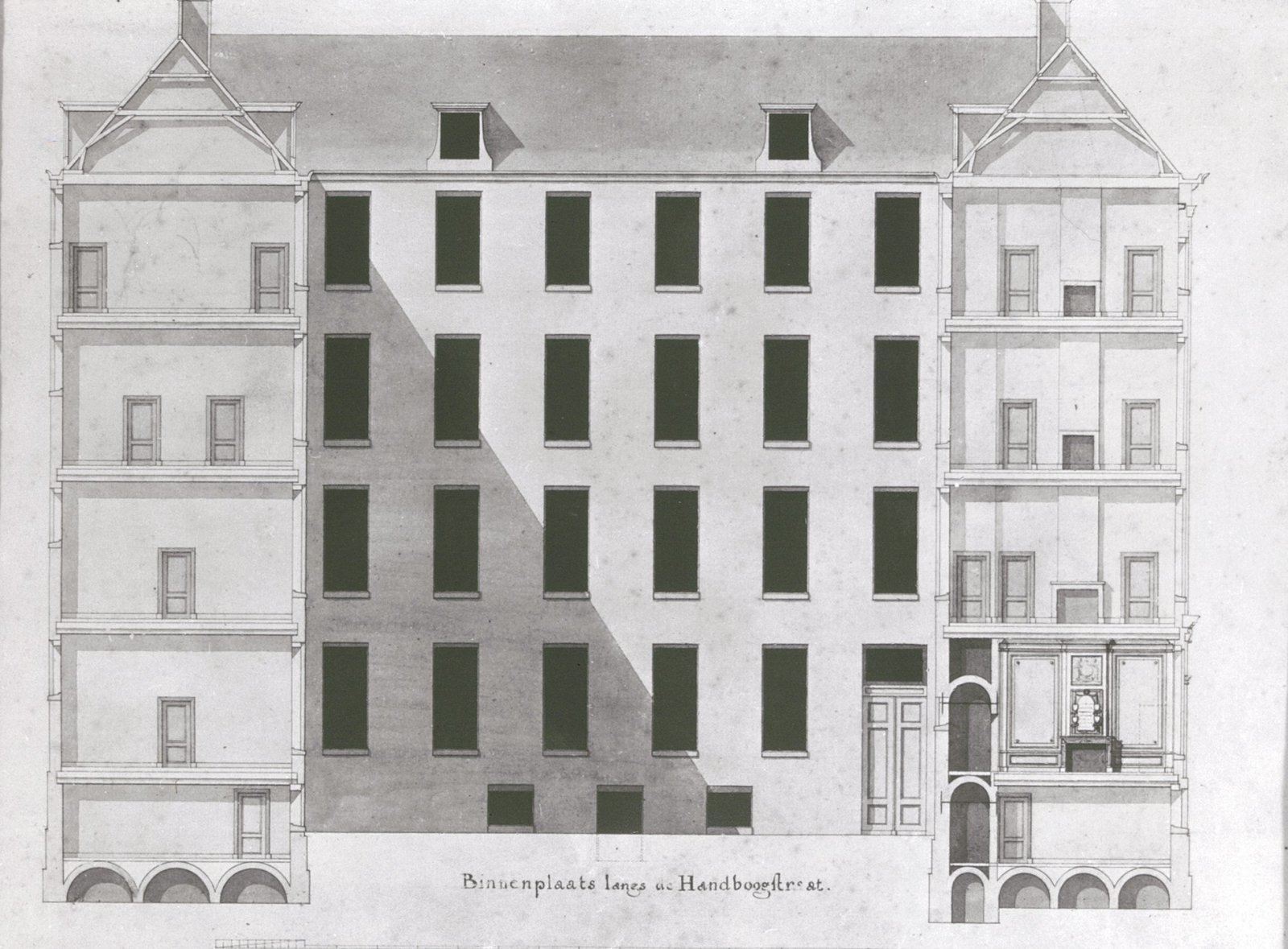 Exterieur TEKENING, DOORSNEDE NAAR HANDBOOGSTRAAT
