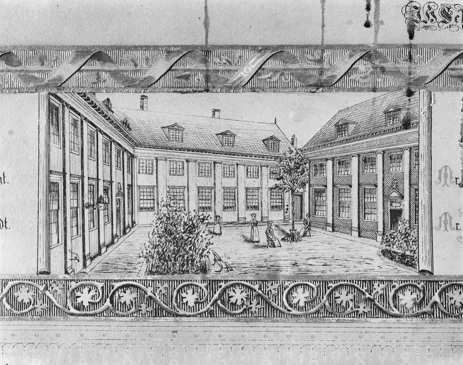 gezicht op het jongenshuis gravure uit Fouquet (1783)