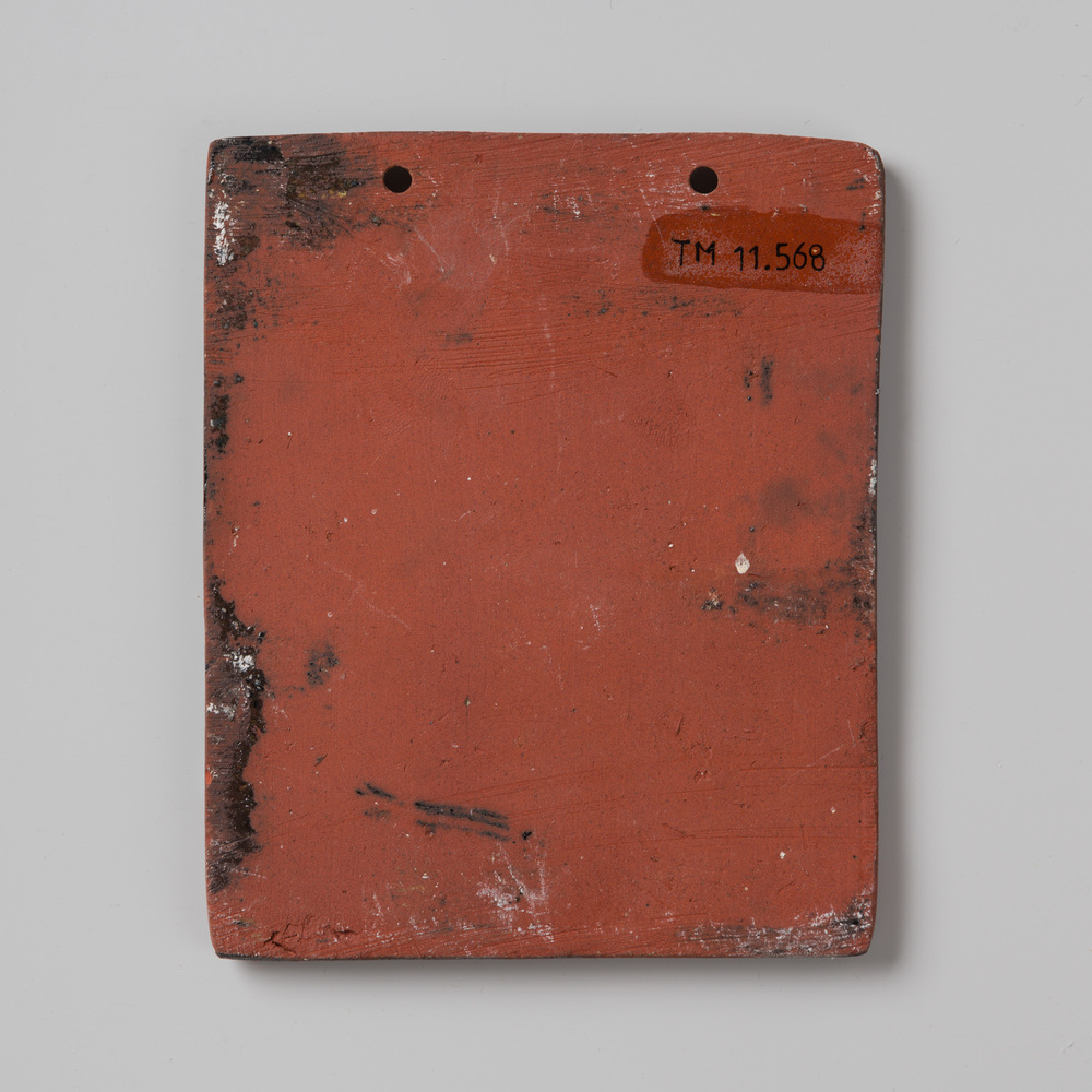 Tegel van keramiek met tinglazuur, voorstellende: or...