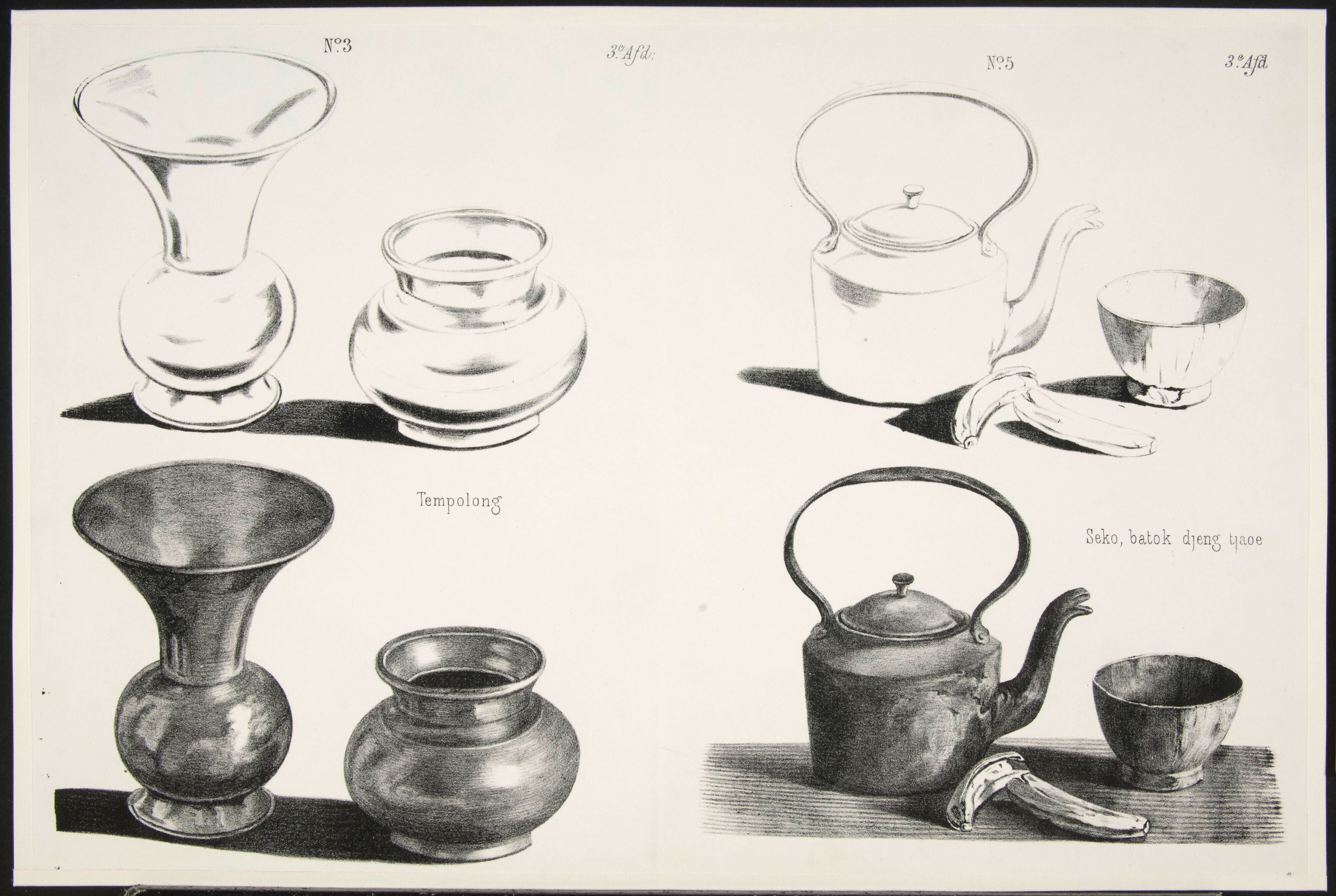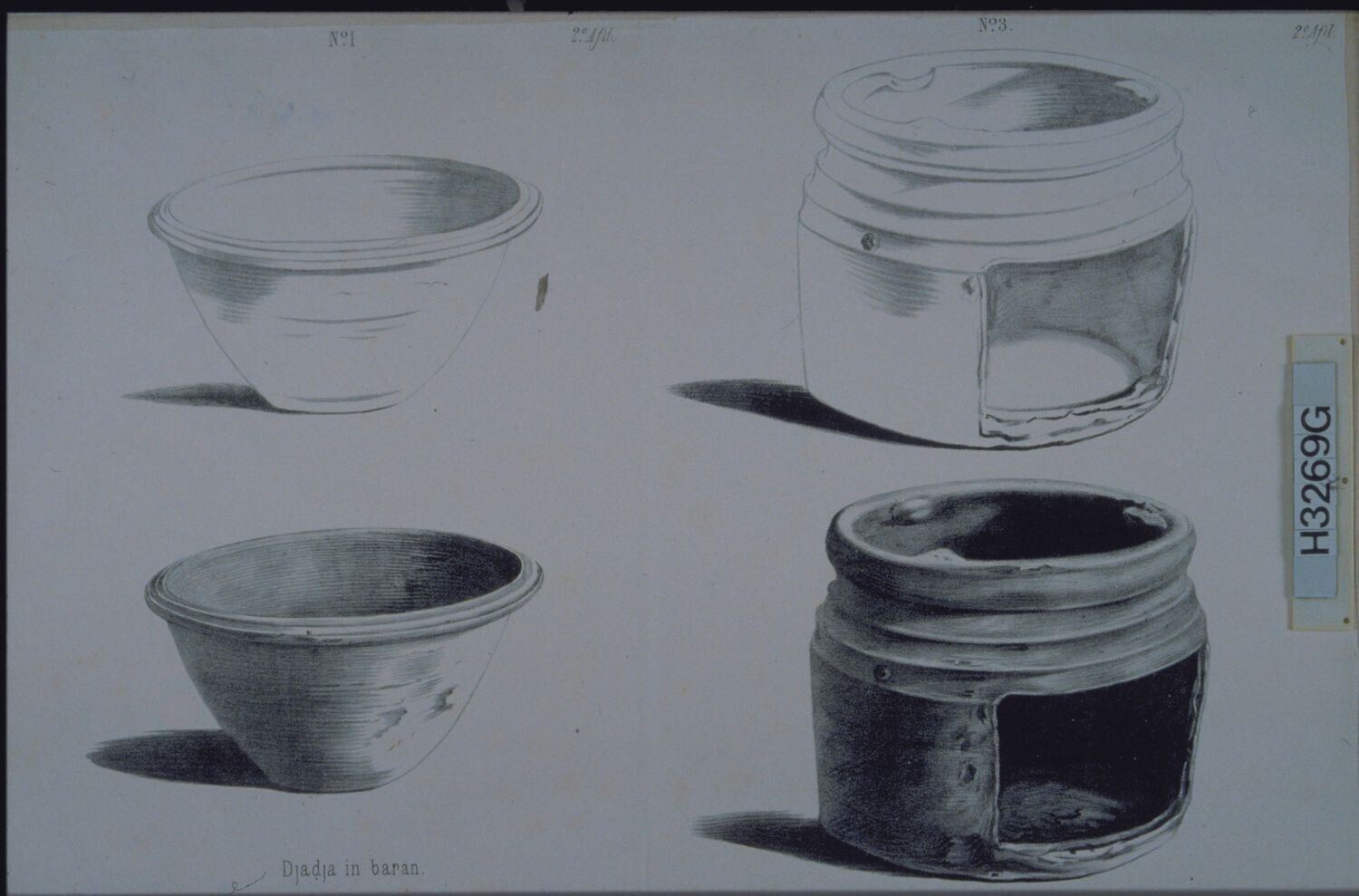 Een olielamp (no 4) en een waterkruik in een schaal ...