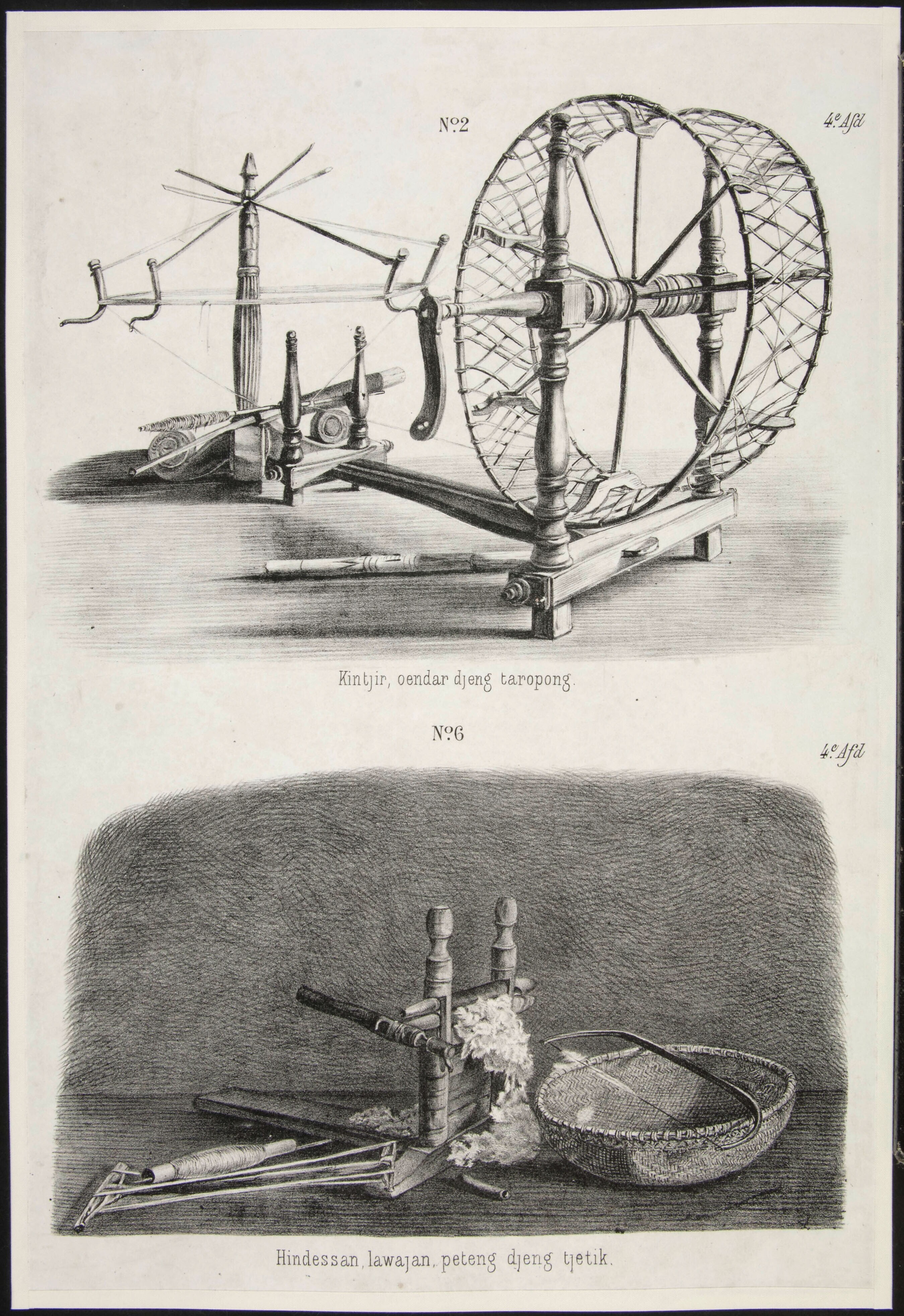 Een spinnewiel (no 2) , een katoenbewerker en een ga...