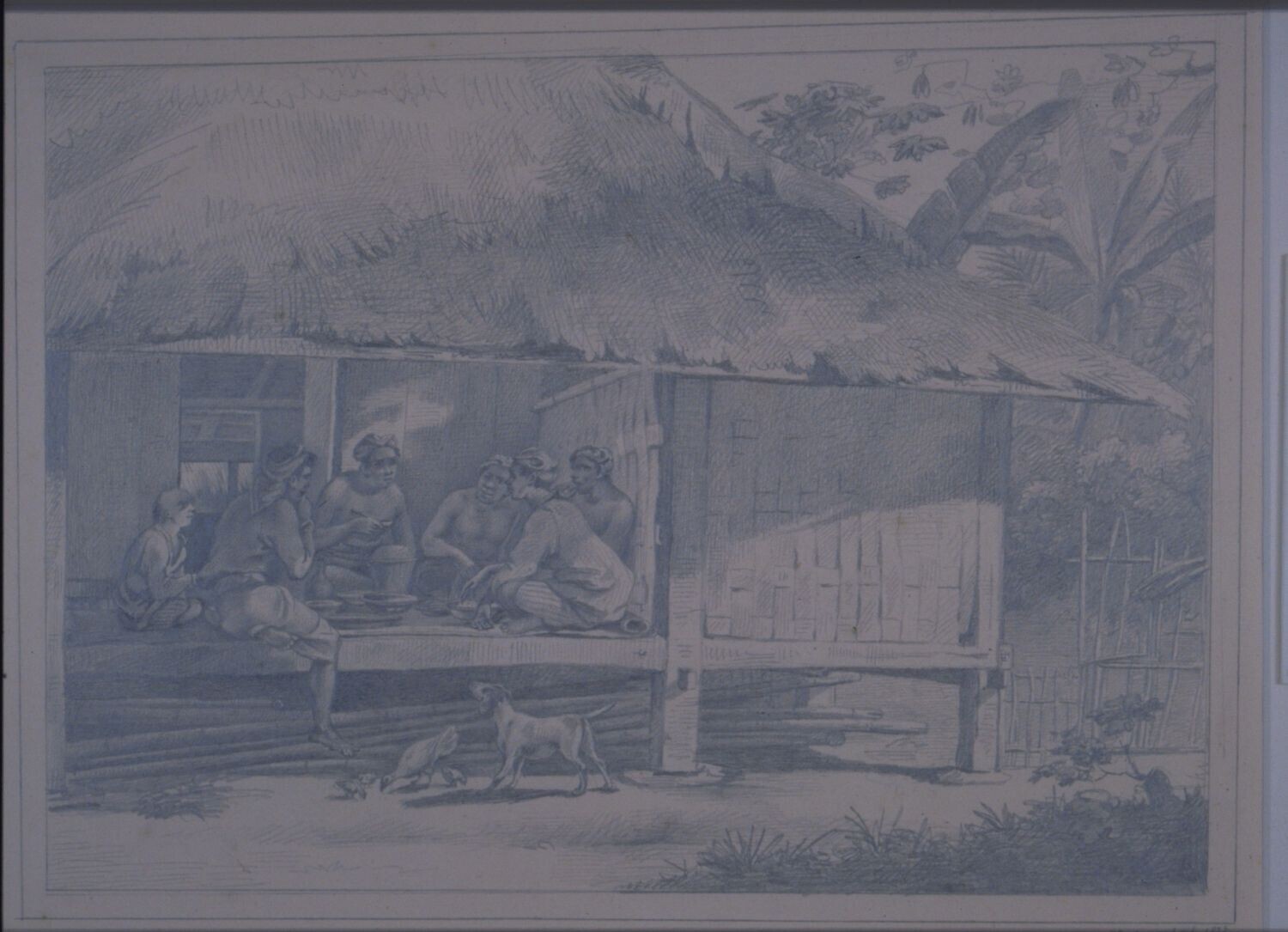 Etende mannen in een dorpswoning