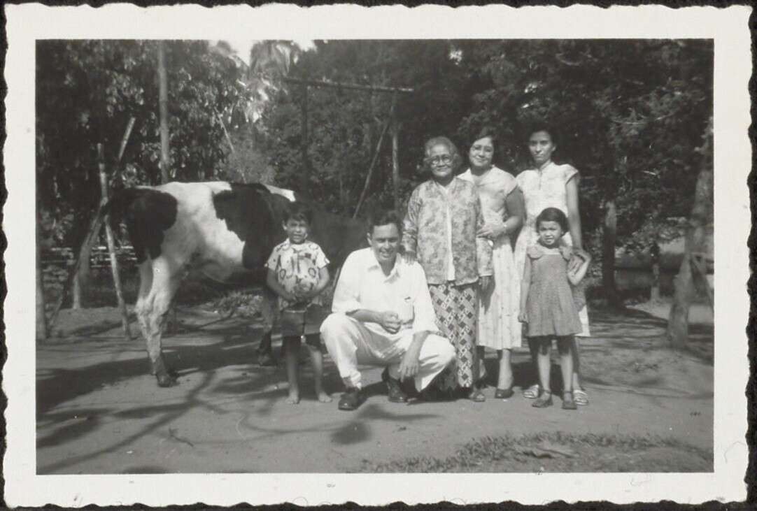 Familieportret bij een koe