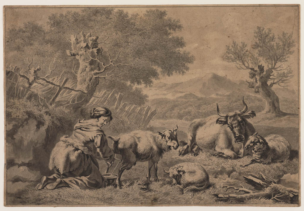 Vrouw melkt schaap