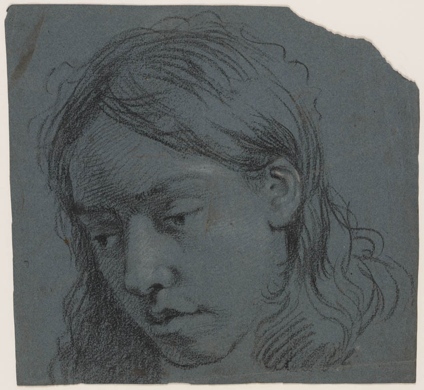 Het hoofd van een meisje dat naar beneden kijkt