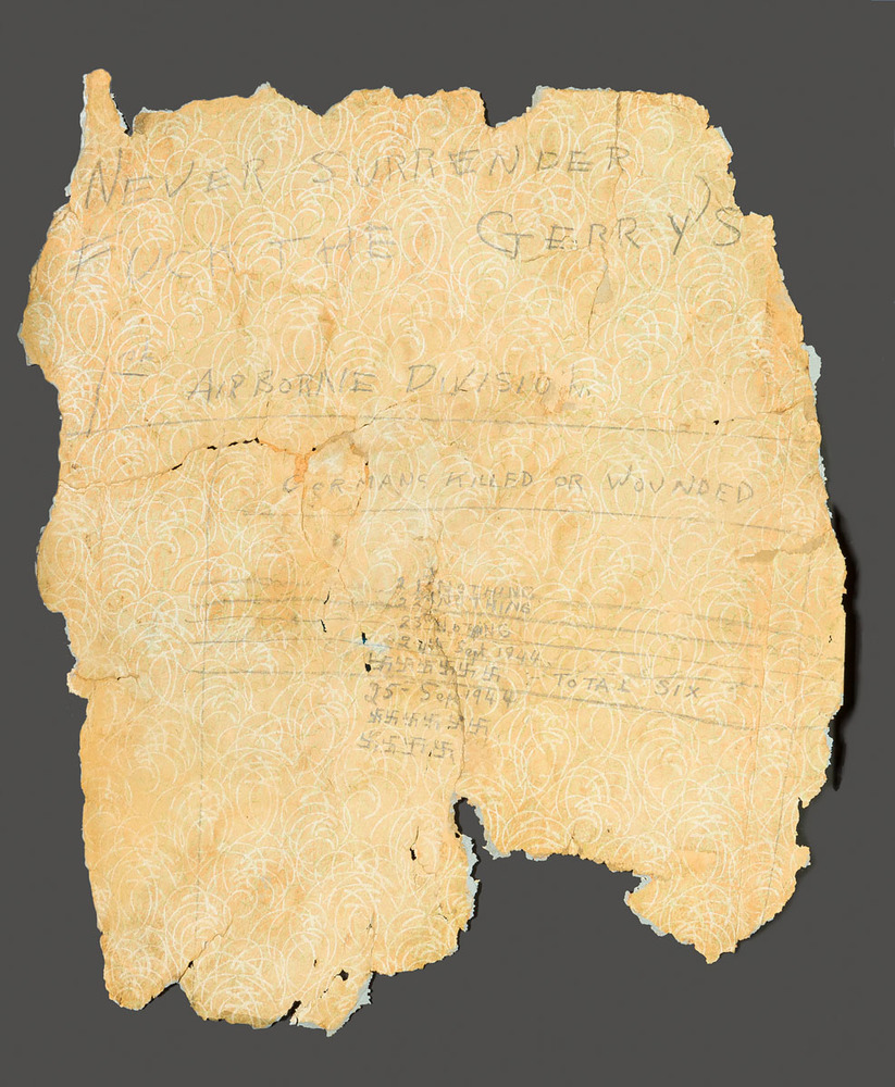 Behangfragment met ‘killscore’ van sluipschutter A.J...