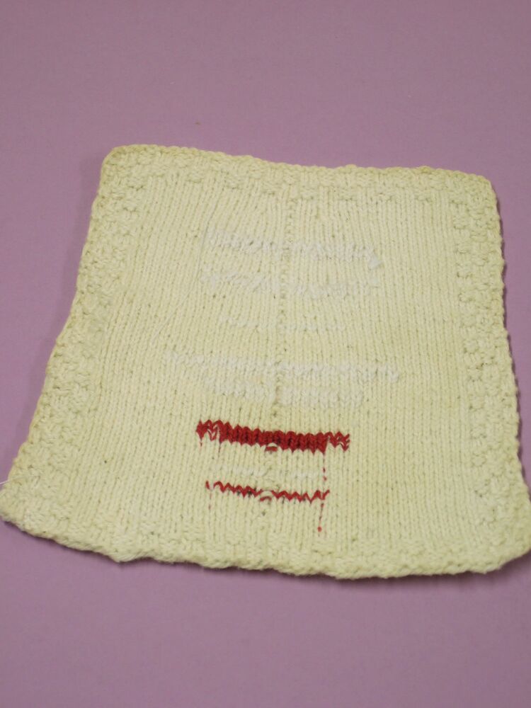 maaslap van katoen, gebreid en gemaasd door M. v. Ho...