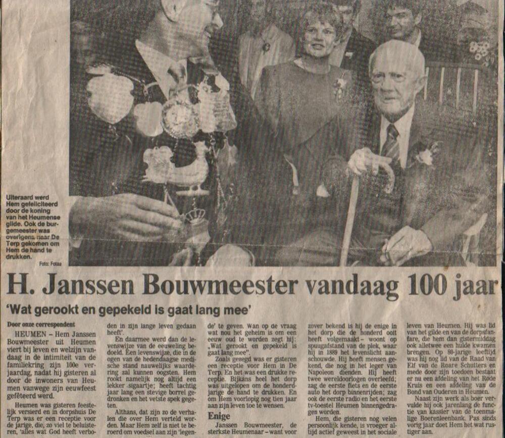 Krantenartikel 100-jarige inwoner Hem Janssen Bouwme...