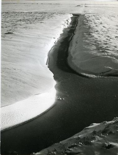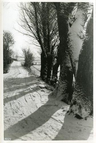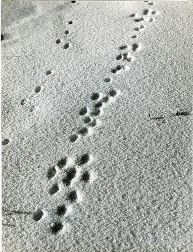 Foto in zwart-wit van sporen in de sneeuw door J.D. ...