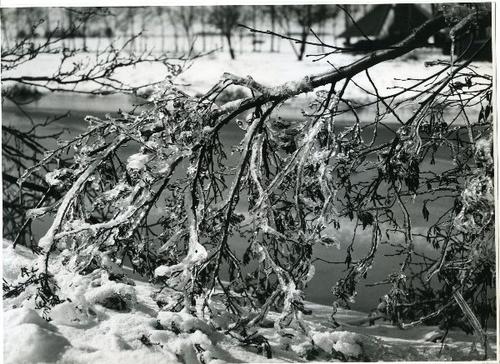 Foto in zwart-wit van een beijzelde tak door J.D. de...