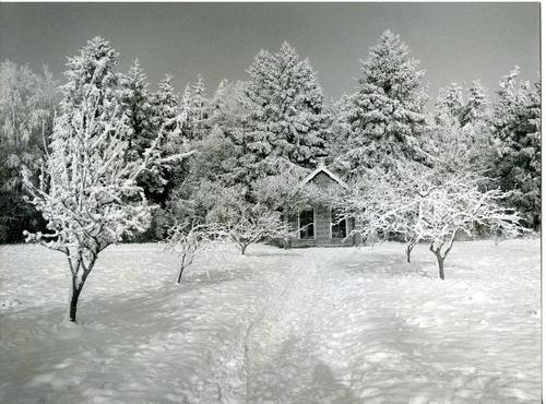Foto van een woudhuisje in de sneeuw door Johan Witt...