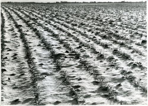 Foto in zwart-wit van een besneeuwde akker door J.D....