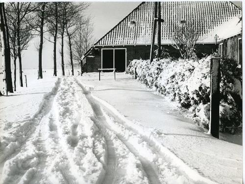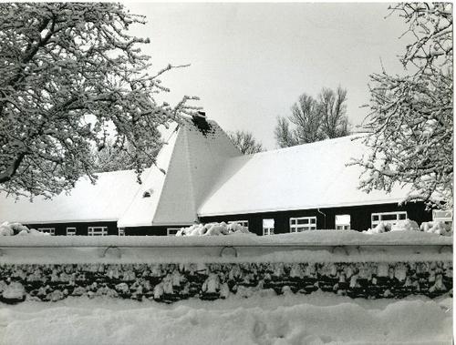 Foto van een kop-hals-rompboerderij in de sneeuw doo...