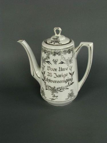 Tinnen koffiekraantjeskan in Empire-stijl op messing...