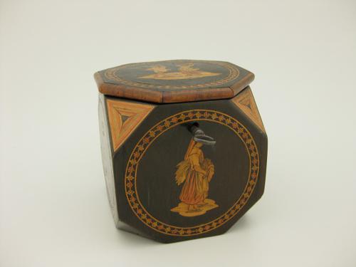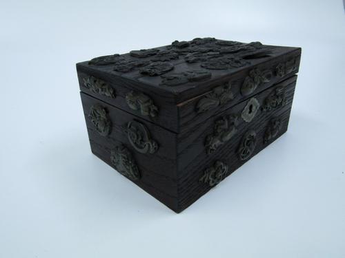 Eikenhouten kerfsnede theekist, Friesland 18e eeuw