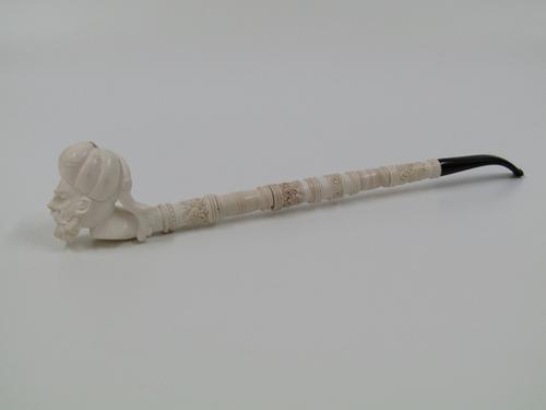 Meerschuim pijp, gesneden als hoofd met tulband en m...