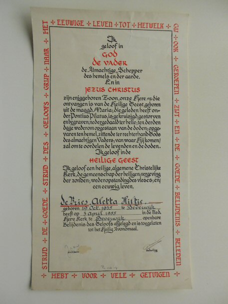 Geloofsbelijdenis Aletta Hiltje de Vries