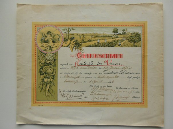 Getuigschrift Hendrik de Vries