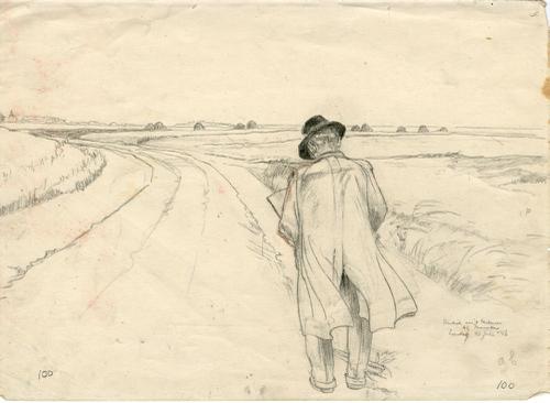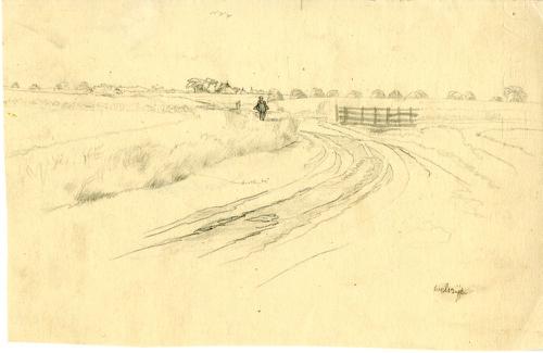 Tekening met potlood van de Slachtedijk bij Franeker...