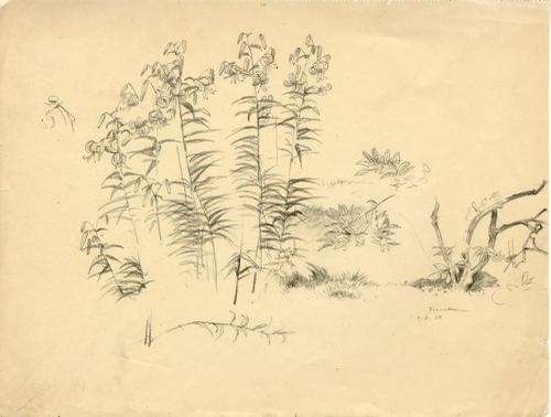 Tekening met potlood van takken met lelies door Sjoe...