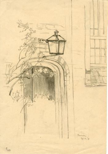 Tekening met potlood van de toegangsdeur van de Mart...