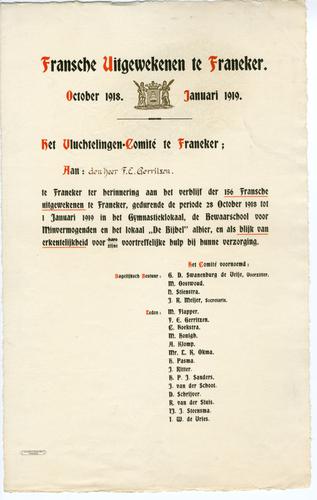 Oorkonde van het vluchtelingencomité te Franeker
