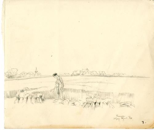Tekening met potlood van een landschap bij Welsrijp ...