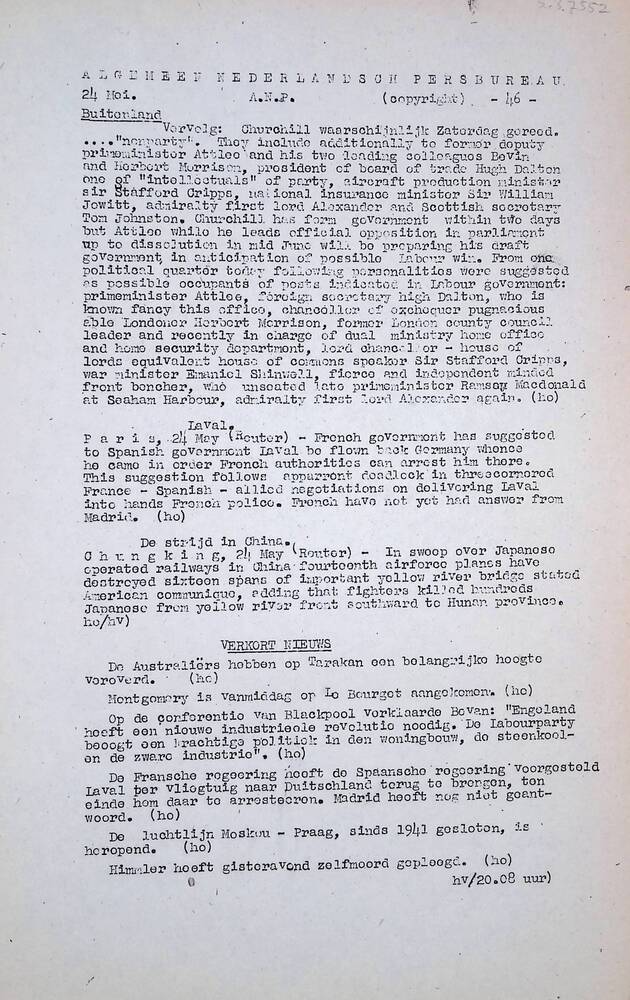 Algemeen Nederlandsch Persbureau, mededelingen, 24 m...