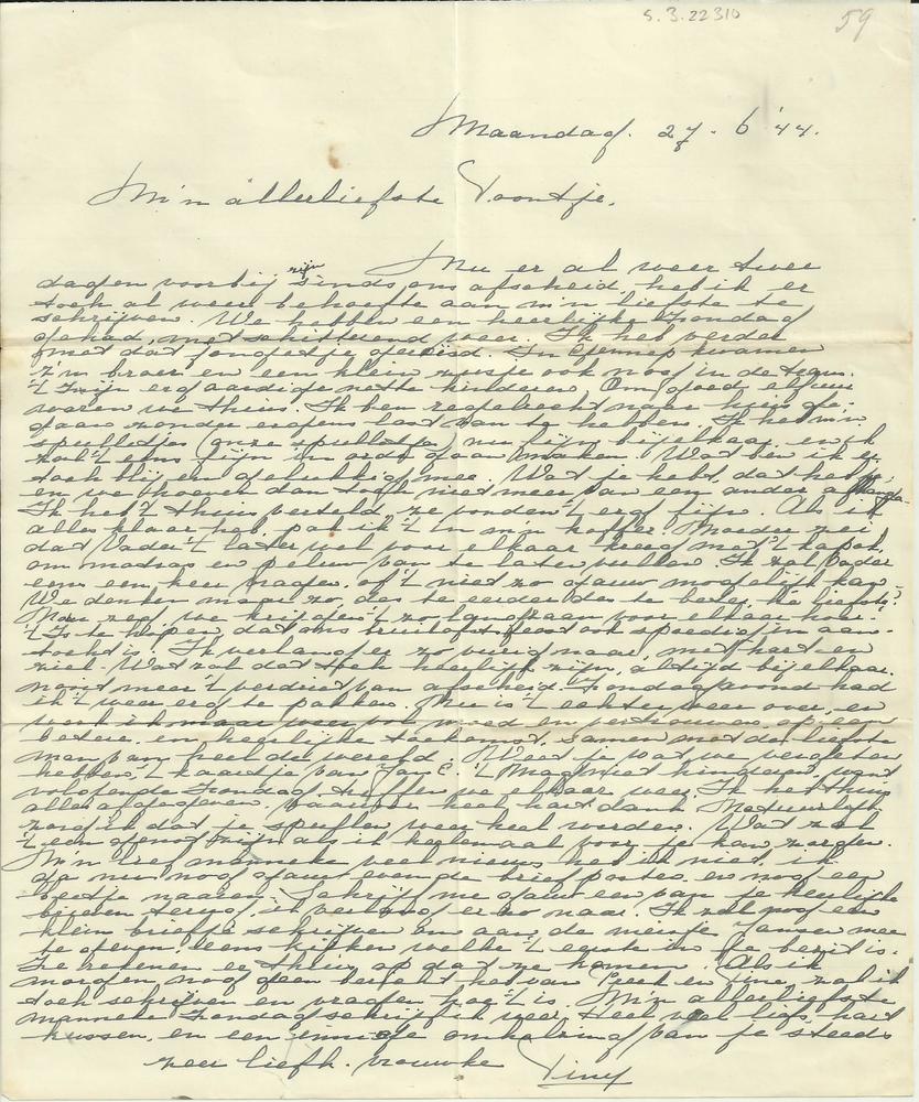 Brief van Tiny Middendorp aan verloofde, 27 juni 1944